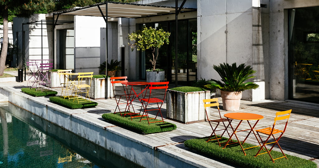 Wipe clean finishes and folding bases make metal bistro tables an obvious choice for somewhere looking for easy care solutions, and with a huge range of colours to choose from they can change the look and feel of a space without a huge expense.