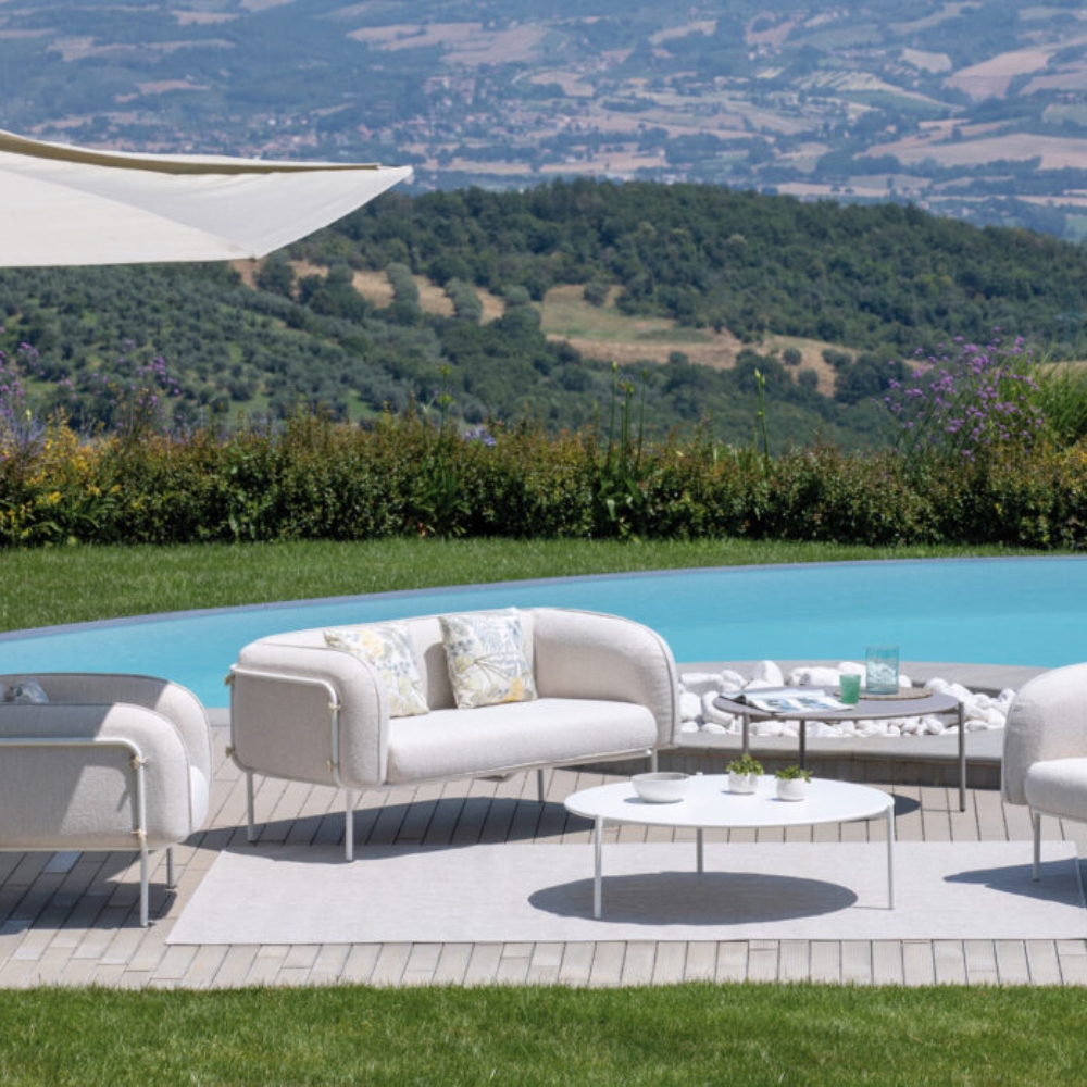Model Number : 77730The Alamari Collection is designed for outdoor spaces, combining durability and contemporary style. Its metal components are finished with Qualicoat Class 1 and Class 2 thermosetting polyester powders, ensuring long-lasting protection against the elements.