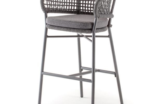 The Atol Barstool is a sleek and stylish addition to any bar or high-top dining area. Its durable aluminium frame is elegantly wrapped with acrylic rope, offering a modern yet timeless aesthetic. The upholstered cushion, covered in weather-resistant Olefin fabric, provides comfort and practicality for both indoor and outdoor use.