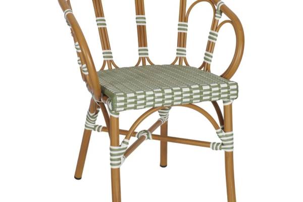 The Bordeaux Armchair offers a contemporary twist on the traditional bistro chair, showcasing a stylish dual-color woven design available in two different colour schemes.