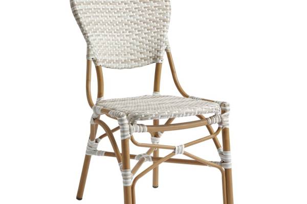 The Brittany Side Chair boasts a high-quality faux wicker seat and backrest, complemented by a durable aluminium frame with a bamboo effect.