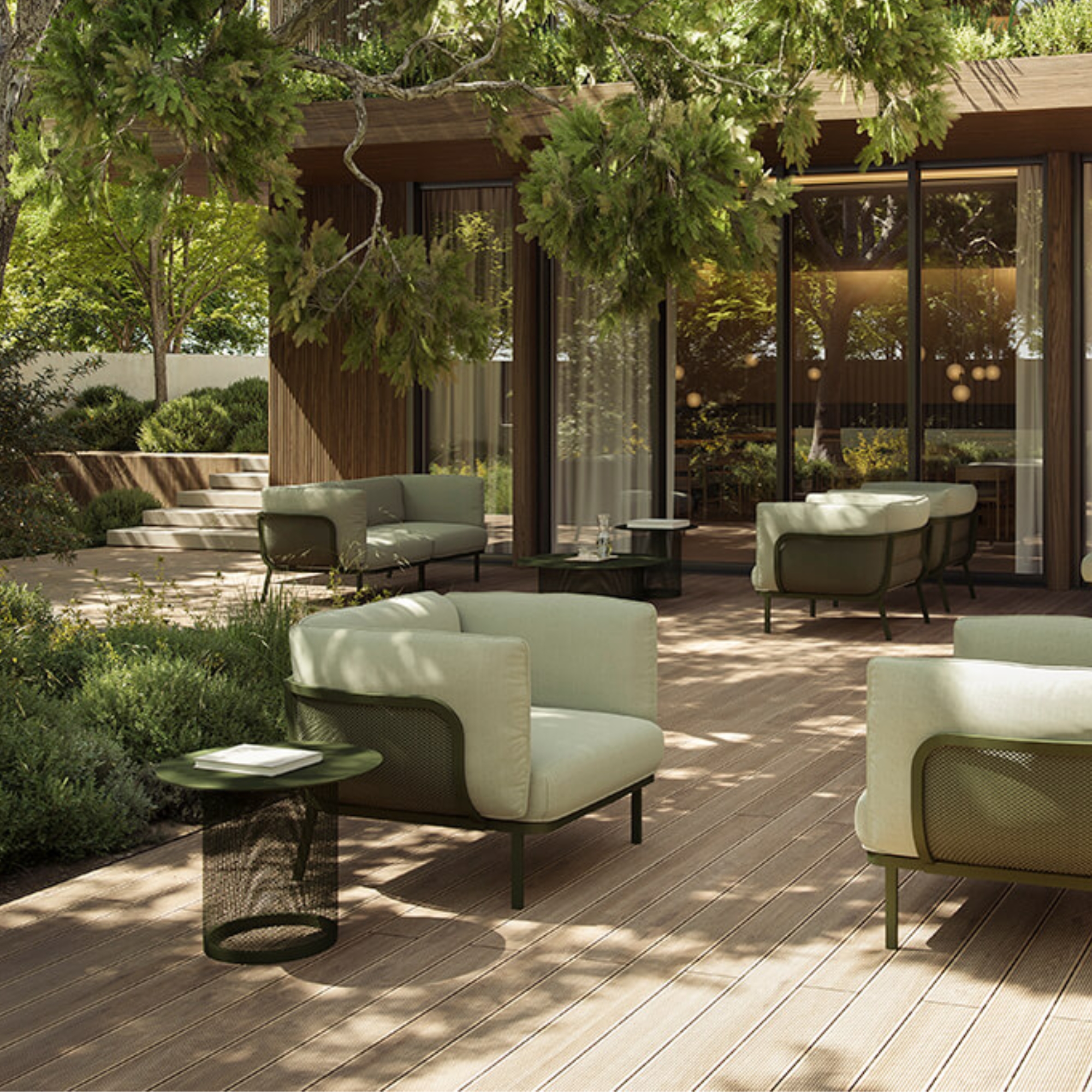 The Cabla 5050 low table is a stylish and durable outdoor coffee table designed to complement modern garden and terrace settings. Featuring a distinctive stainless-steel wire mesh base and round steel top, it offers a clean, minimalist aesthetic while providing excellent strength and stability. Suitable for both residential and commercial environments, the table is built to withstand outdoor conditions, including coastal and exposed spaces.