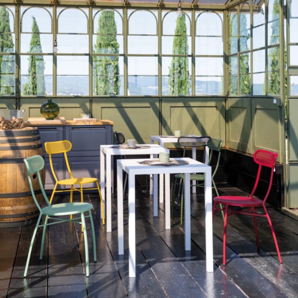 Model Number : 77739The Ciao Side Chair is a stylish and robust seating solution, perfect for both indoor and outdoor settings. Its metal structure is coated with Qualicoat Class 1 and Class 2 polyester thermosetting powders for superior durability and a flawless finish.