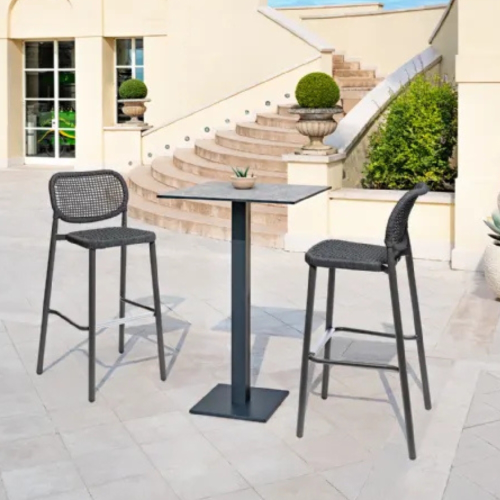 Model Number : 77831The Cloe Barstool features a polyester powder-coated aluminium frame, with a seat and backrest elegantly wrapped in hand-woven synthetic rope.