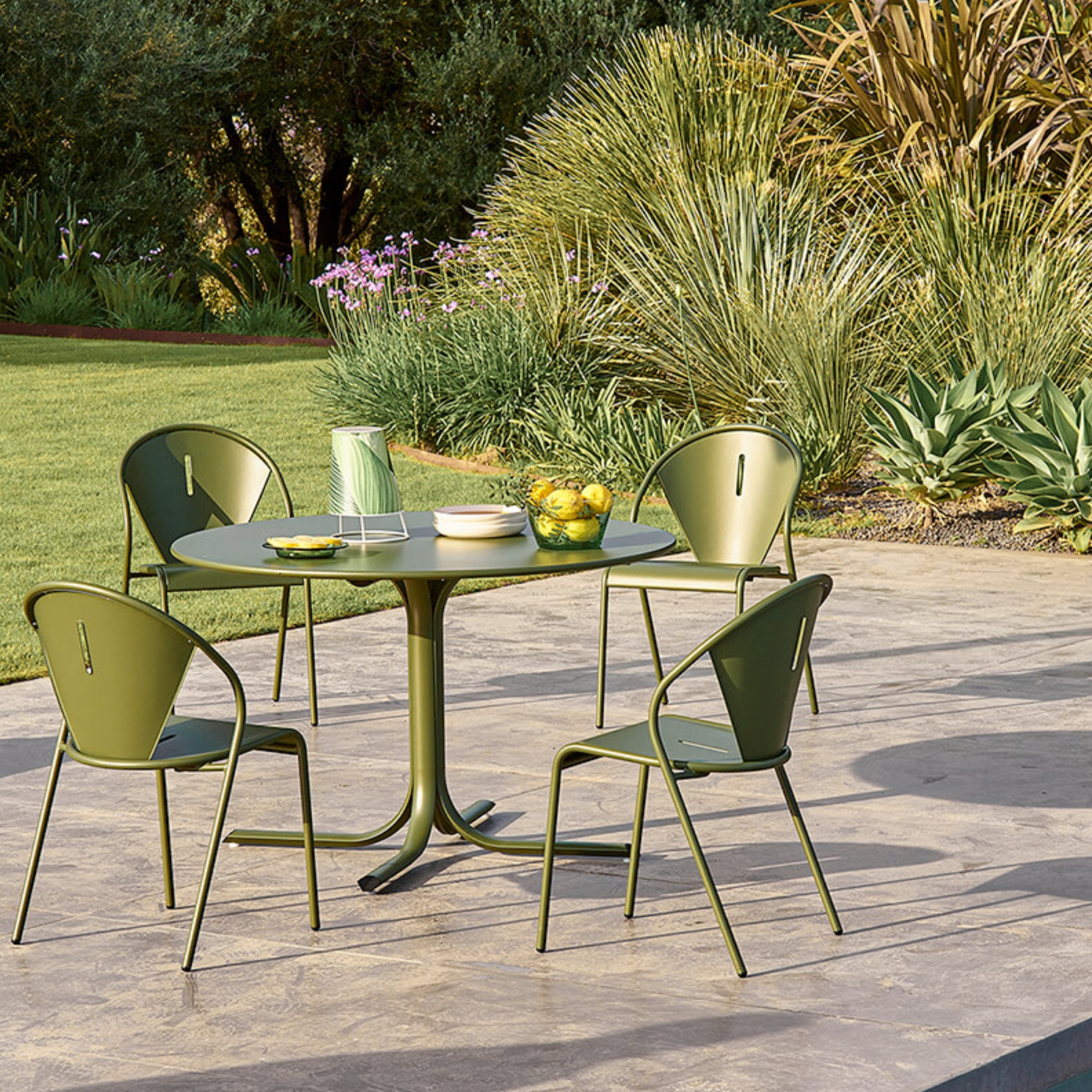 A modern reinterpretation of a classic industrial design, the Code chair is a stackable outdoor dining chair made from durable powder-coated steel. Its ergonomic, curved seat and backrest are designed for comfort and support, making it suitable for both residential gardens and high-traffic contract environments such as cafés, restaurants and terraces. Its minimalist, street-style aesthetic allows it to pair easily with a wide range of outdoor tables.
