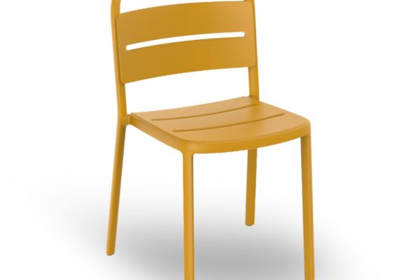 This chair is designed for both indoor and outdoor use, made from polypropylene with fiberglass using gas-assisted molding technology, and features UV protection for long-lasting durability.
