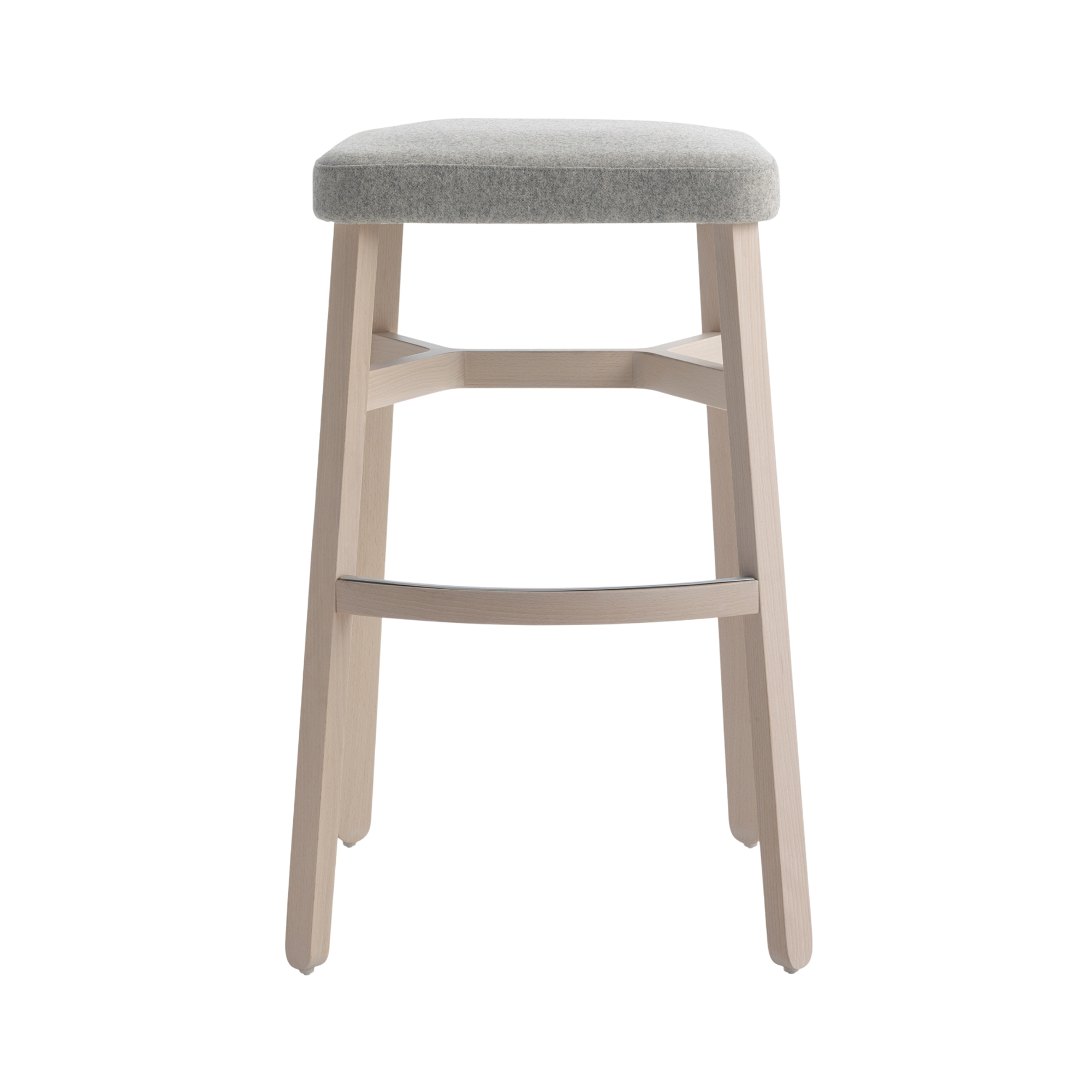 Model Number : 78069The Croissant 578 stool is a high seating solution in the Croissant collection, featuring a solid beechwood frame with an upholstered seat and footrest. Its characteristic rounded legs and subtle cross‑bracing reflect the collection’s signature design language, making it ideal for bar, counter and hospitality settings seeking cohesive style and comfort.