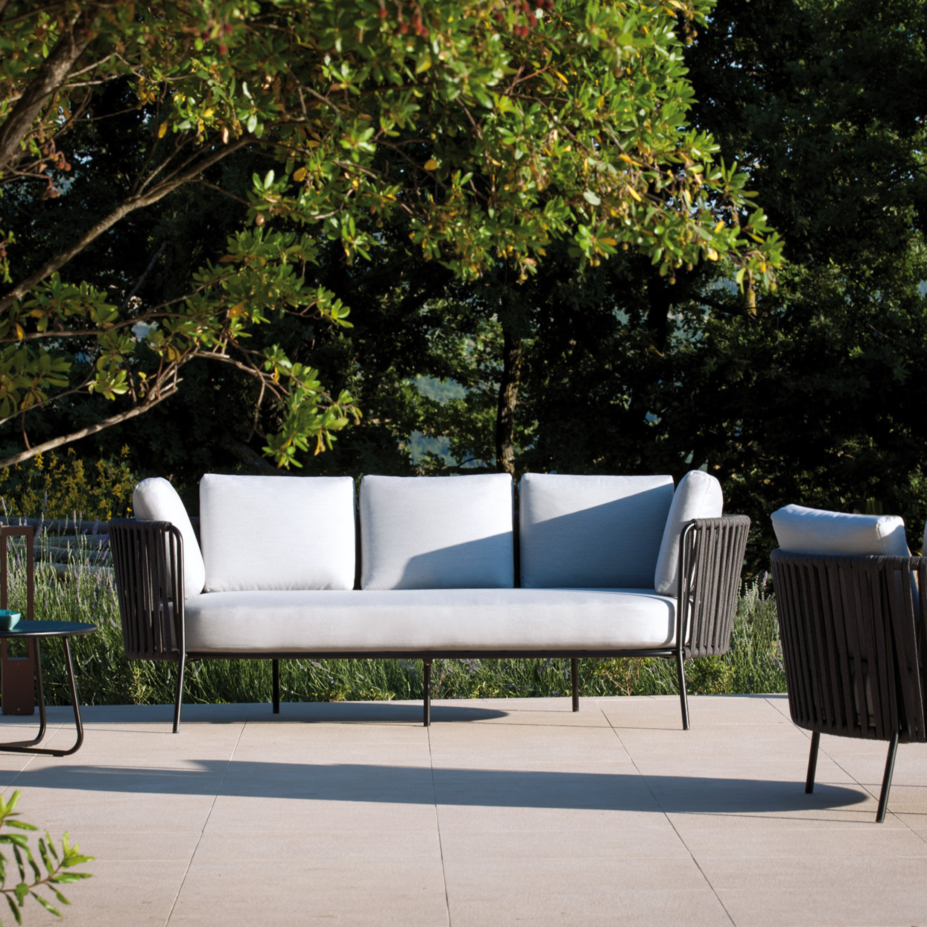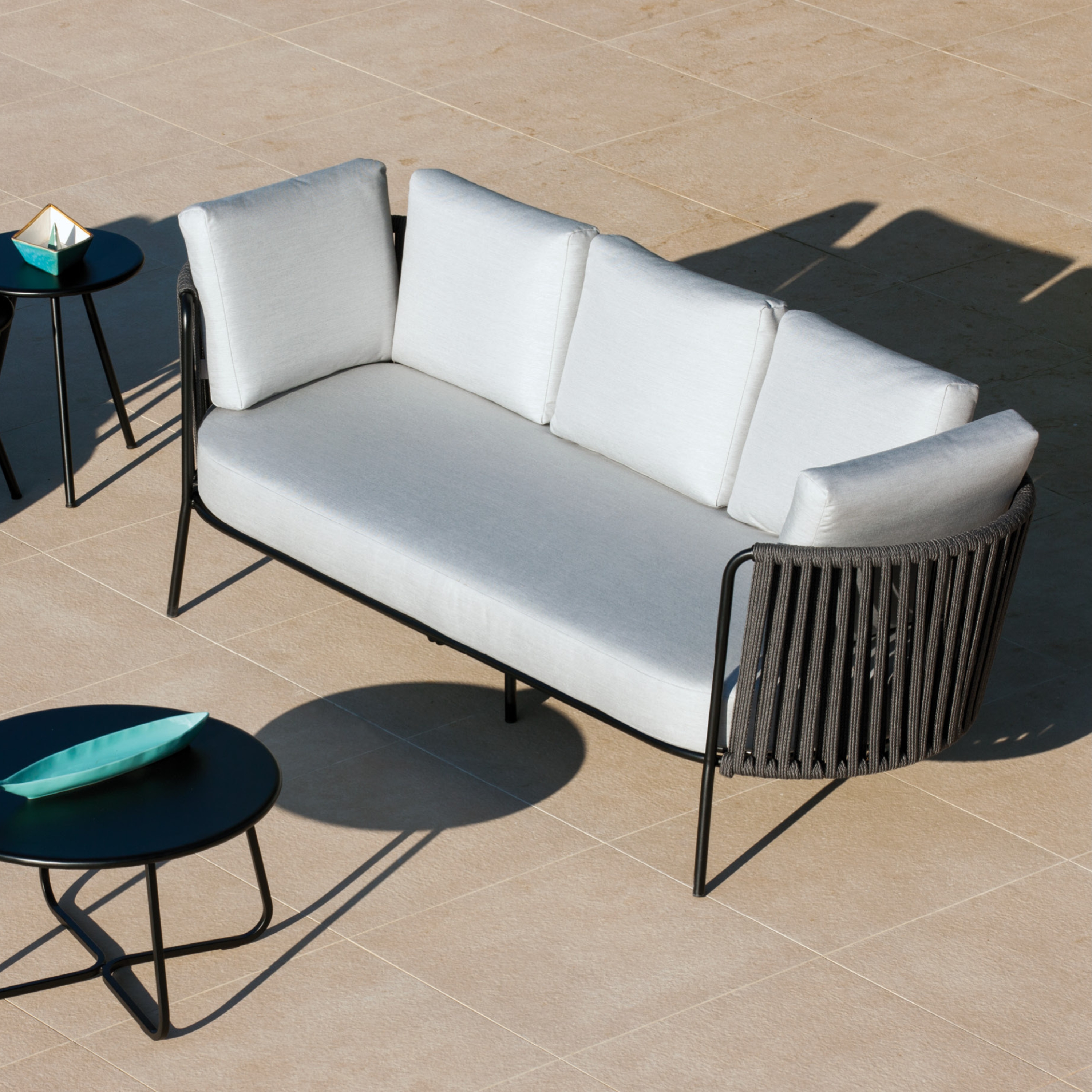 This collection blends contemporary style with geometric shapes and essential lines, creating a dynamic and functional outdoor living space. Its fluid, almost dreamlike design seamlessly integrates into any environment, elevating the atmosphere.