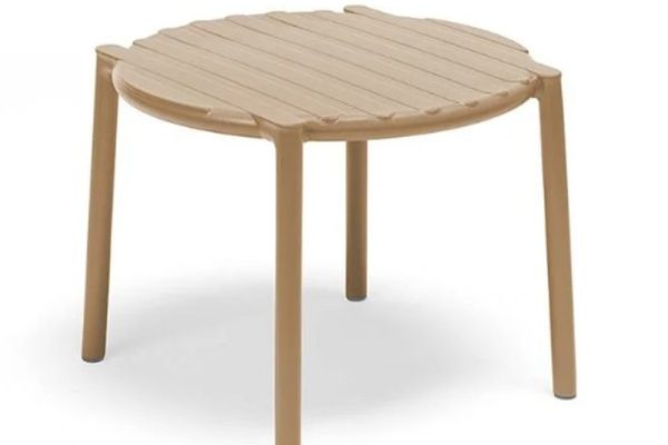 The Doga table brings a modern touch to the classic slatted design. This monobloc low table, crafted from fiberglass resin, features a round top and a lightweight, contemporary design. It is portable, stackable, easy to sanitise, and fully recyclable.