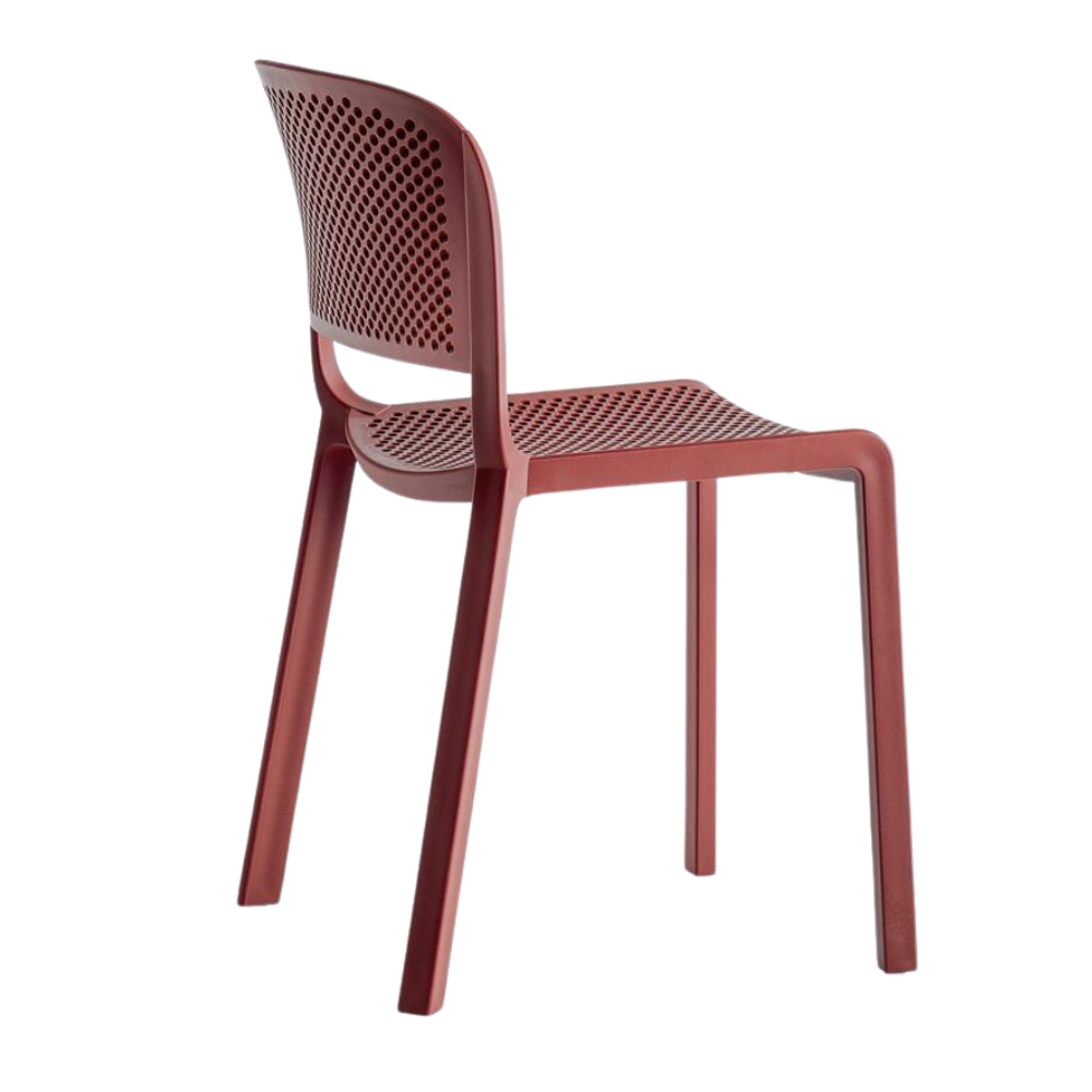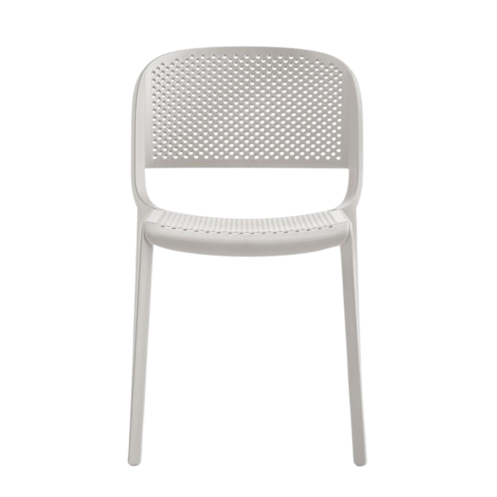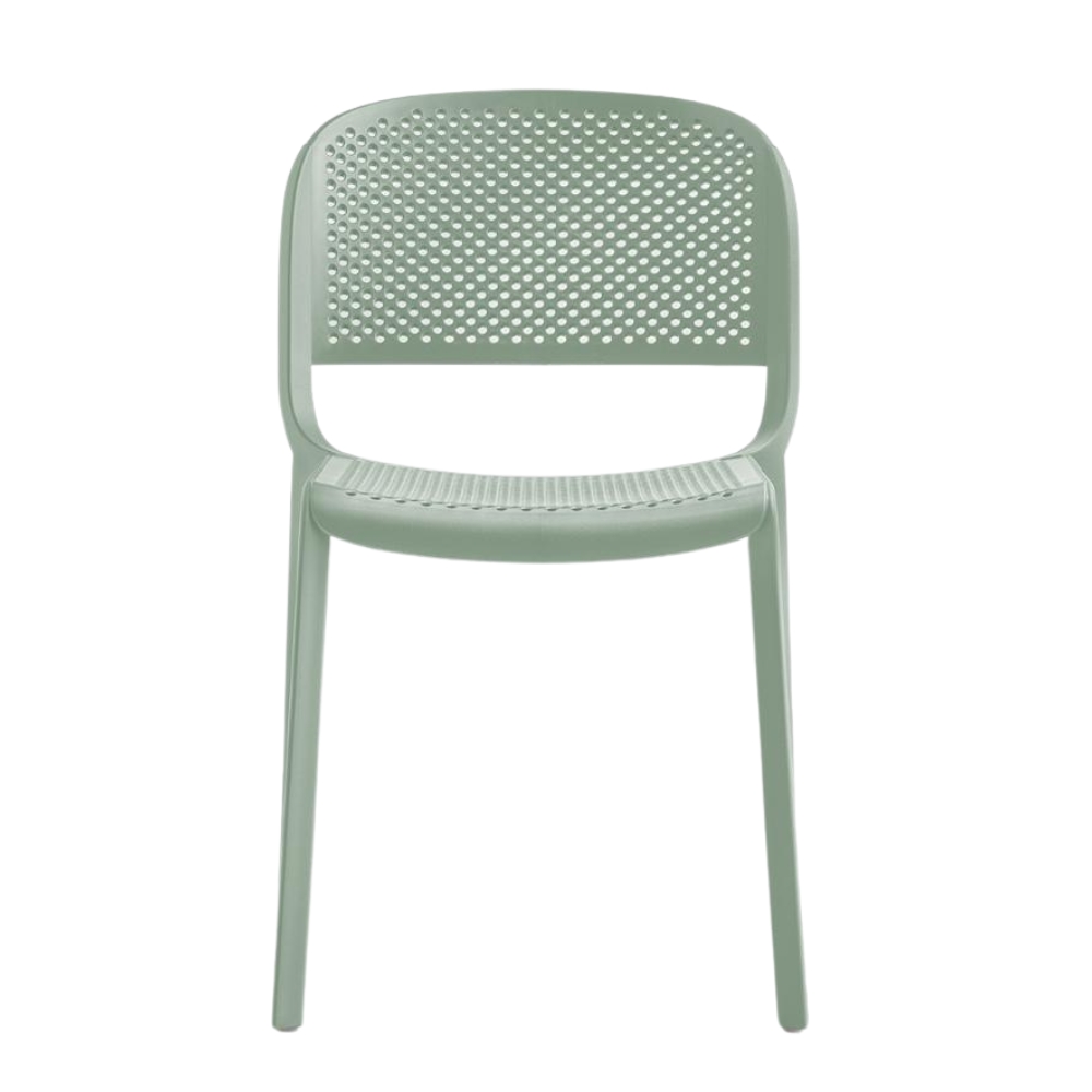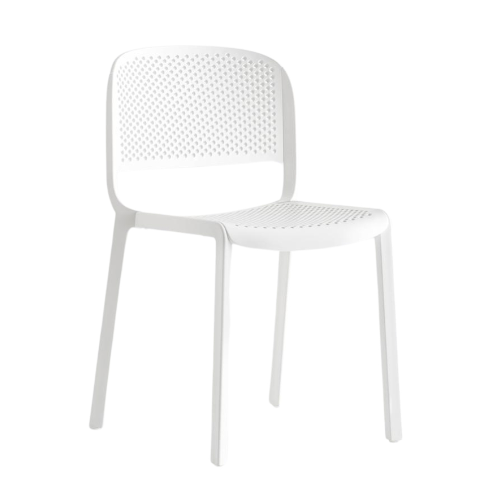 Model Number : 60674Dome is a collection of chairs inspired by the classic bistro style and the elegant arched silhouettes of monumental domes. Made from injection-moulded polypropylene reinforced with glass fiber, it features a perforated seat and back. The chair is stackable for easy storage.