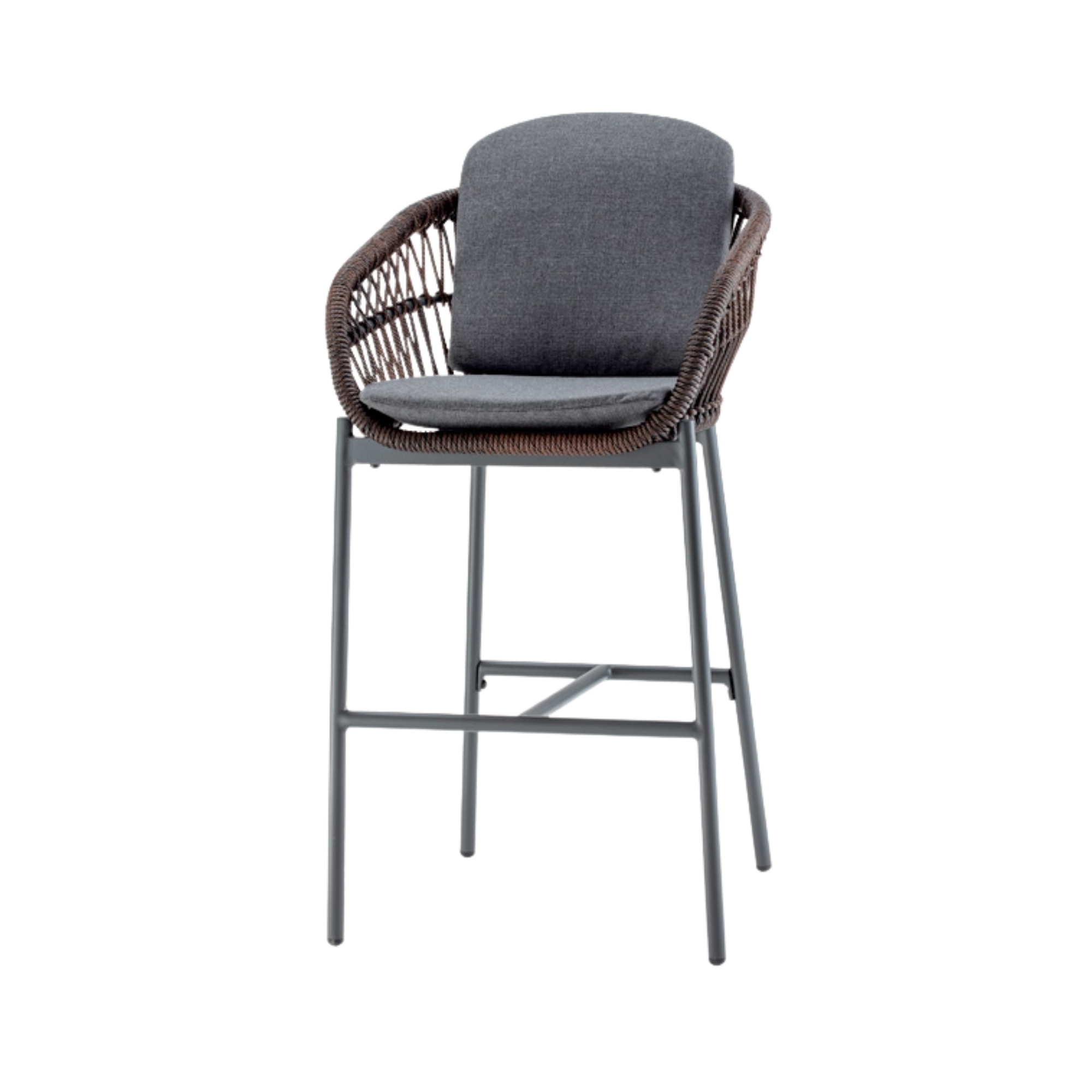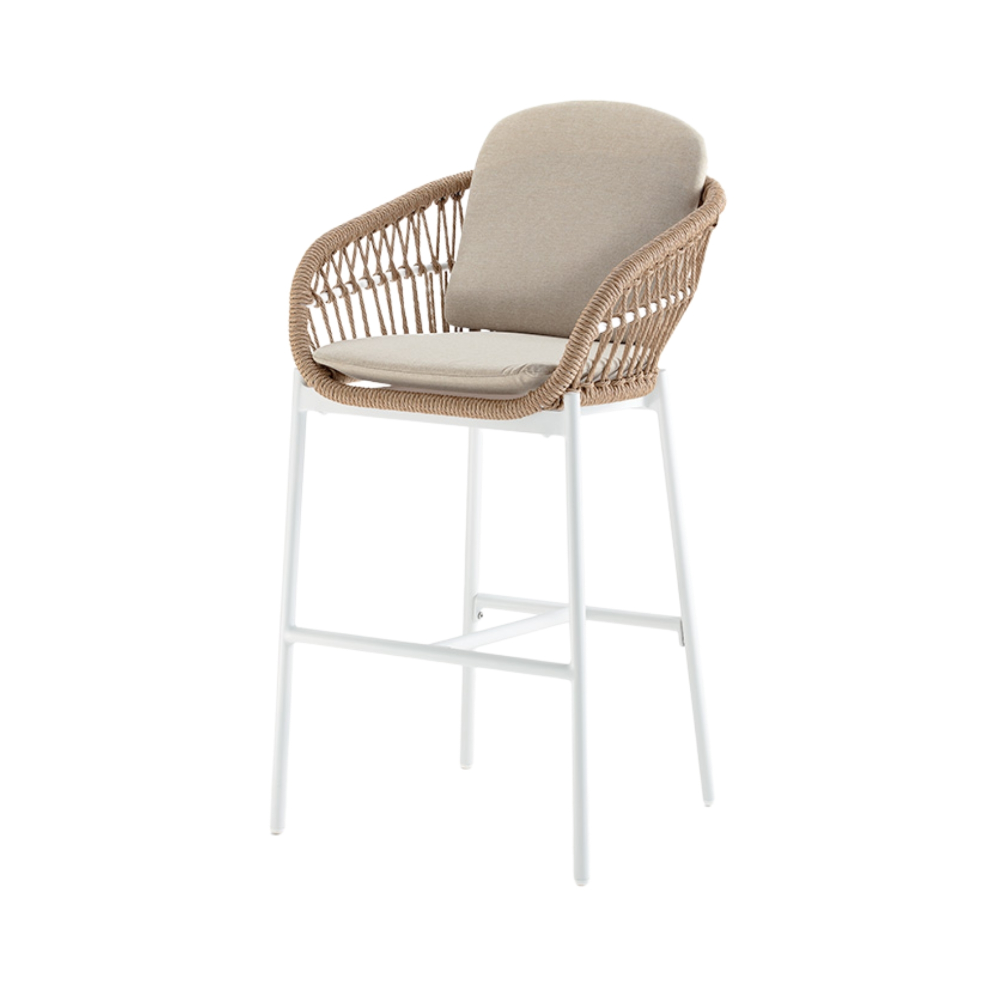 Model Number : 79079The Elba Bar Stool is a refined outdoor seating piece that combines contemporary design with lasting comfort. Featuring a lightweight yet robust aluminium frame and a beautifully woven synthetic rope seat, it is complemented by soft, quick-dry cushions upholstered in durable Olefin fabric. Ideal for terraces, garden bars and hospitality settings, Elba brings understated elegance to any outdoor space.