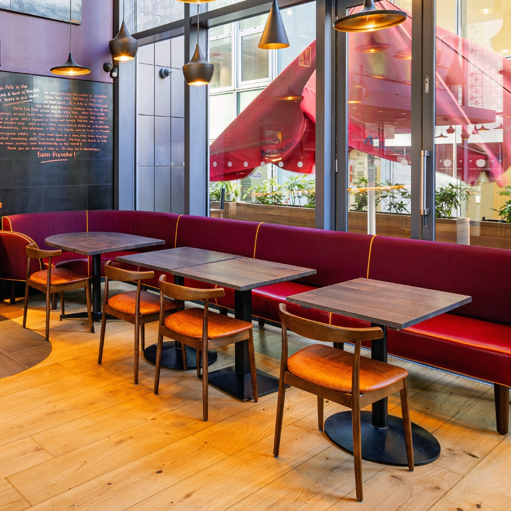 - Upholstered seat available in clients choice of fabric or leather