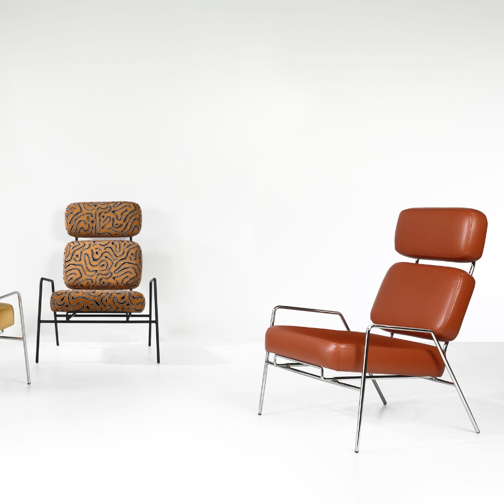 Model Number : 76307This is the Empire Lounge Chair, the personality of this model is distinguished by the linear, curved tubular frame on which various sizes of seat and backrest pads are positioned.