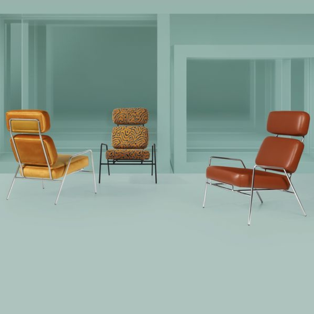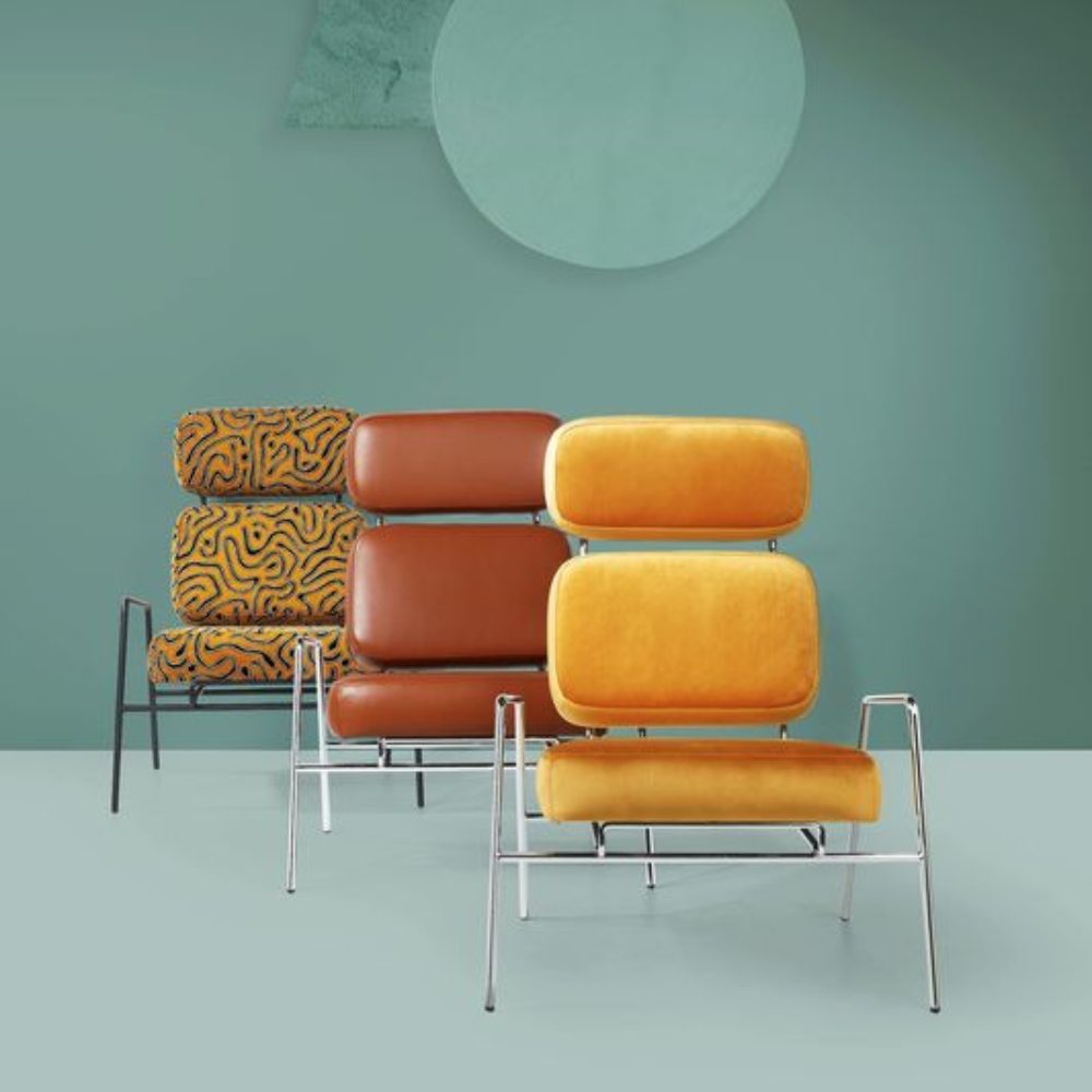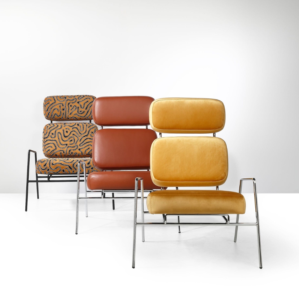 Model Number : 76306This is the Empire Lounge Chair, the personality of this model is distinguished by the linear, curved tubular frame on which a various shapes and sizes of seat and backrest pads are positioned.