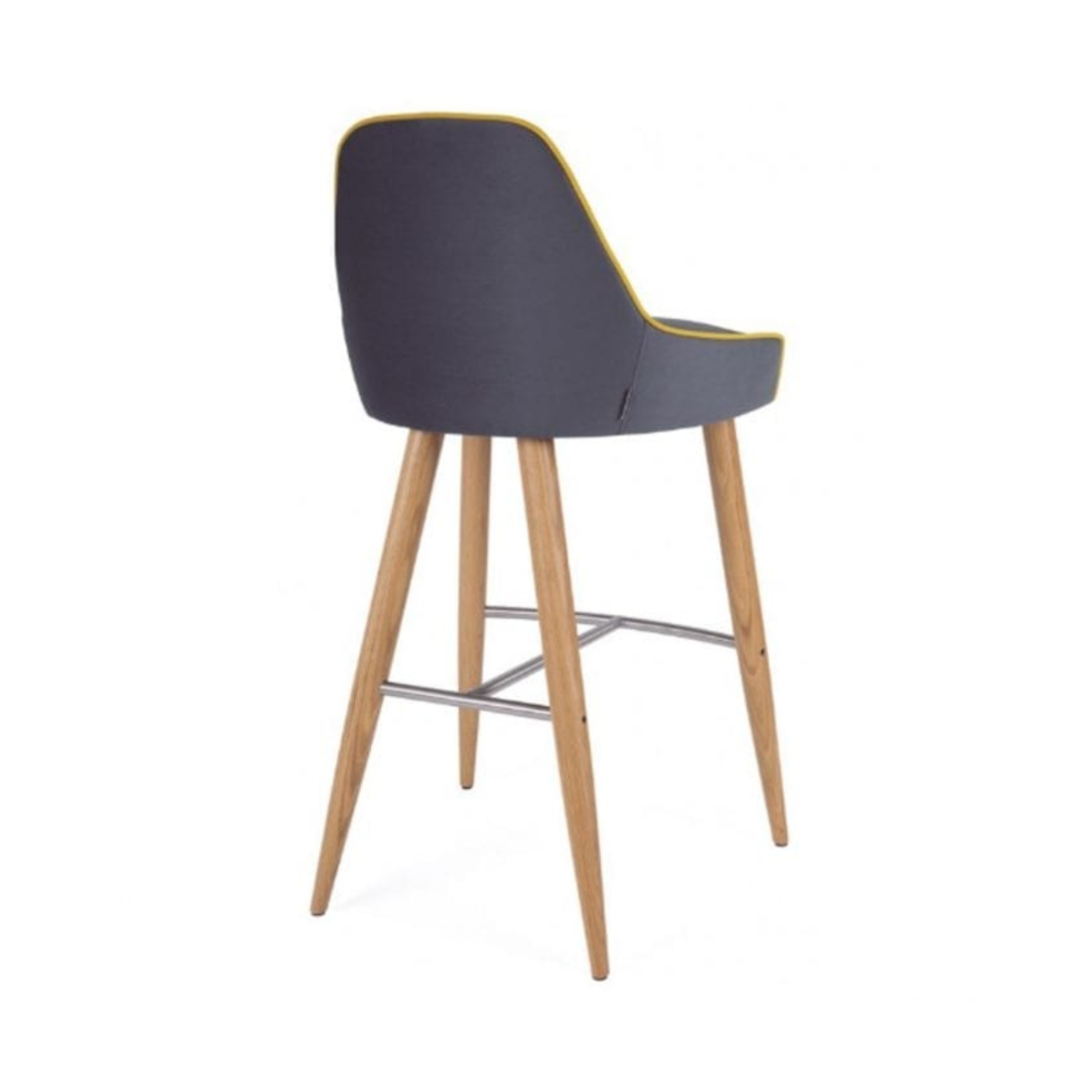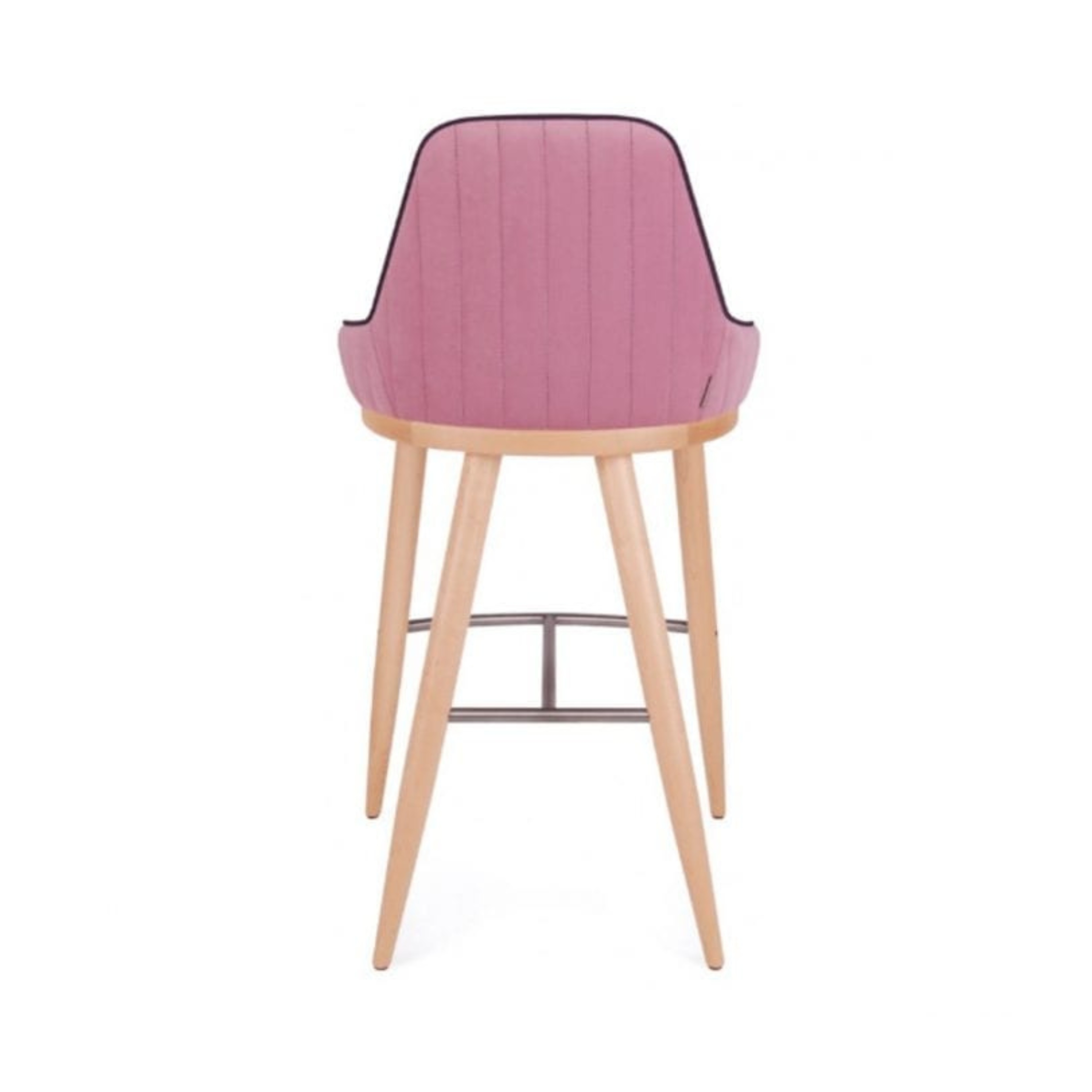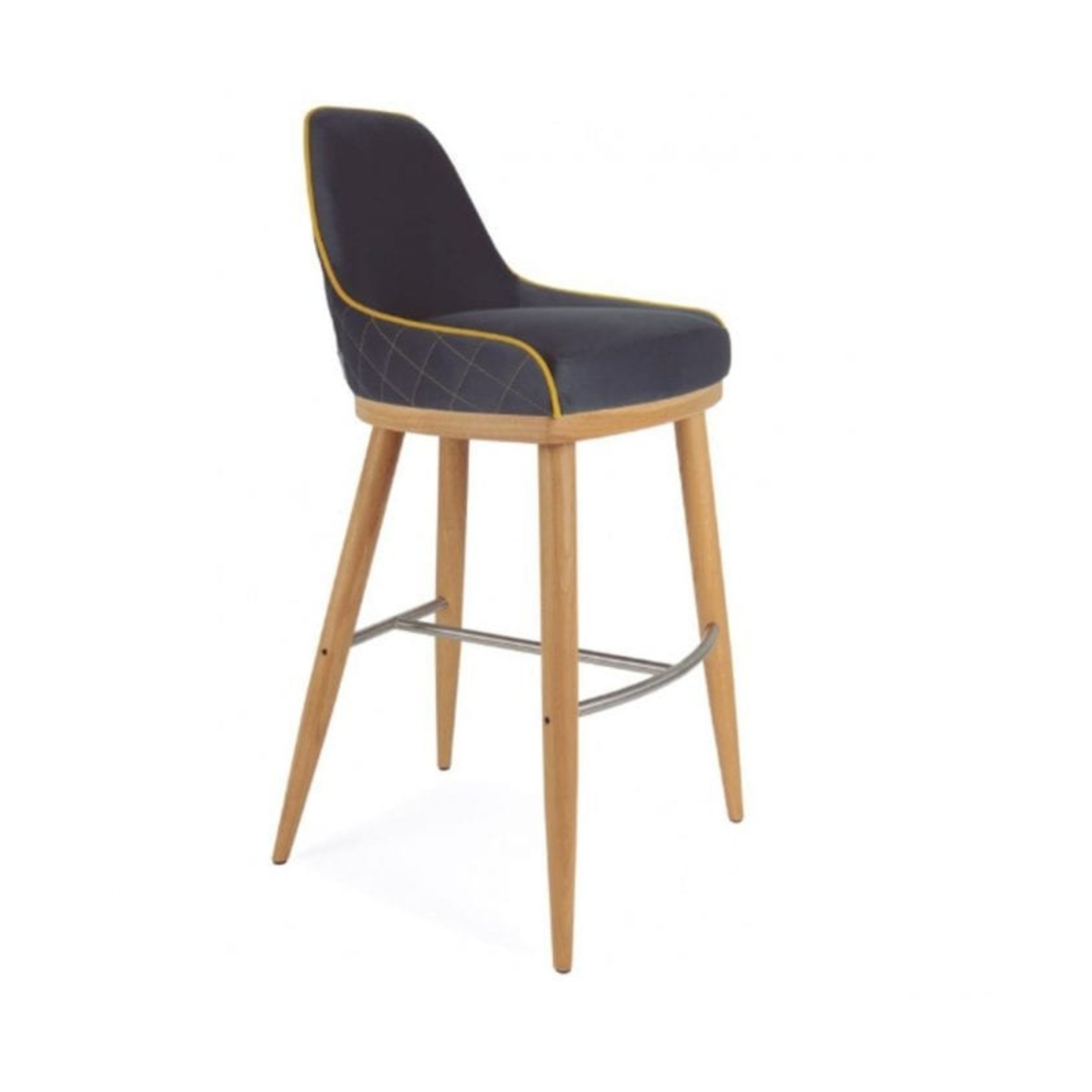 Model Number : 78092GL027 bar stool features a natural wood structure with various finish options, a metallic footrest, and upholstered seating in vinyl, fabric, or natural leather for added comfort.