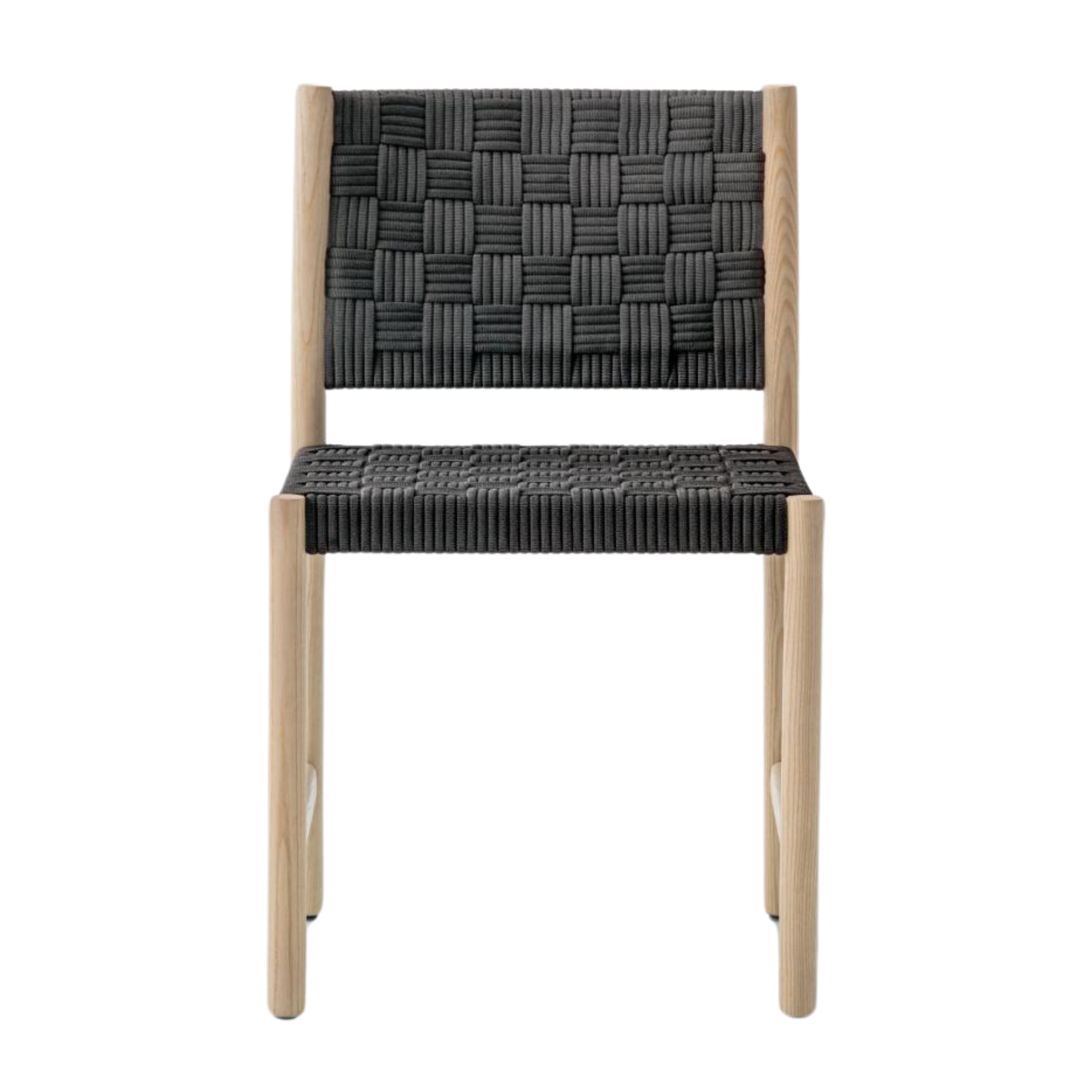 Griante is an elegant outdoor chair that blends traditional craftsmanship with modern industrial design. Featuring a FSC®-certified Iroko wood frame and turned cylindrical legs, it supports a handwoven seat and backrest made in Italy using fully recyclable polypropylene yarn. The distinctive square-patterned weave offers a refined, comfortable, and weather-resistant seating experience with generous proportions and a sophisticated look.