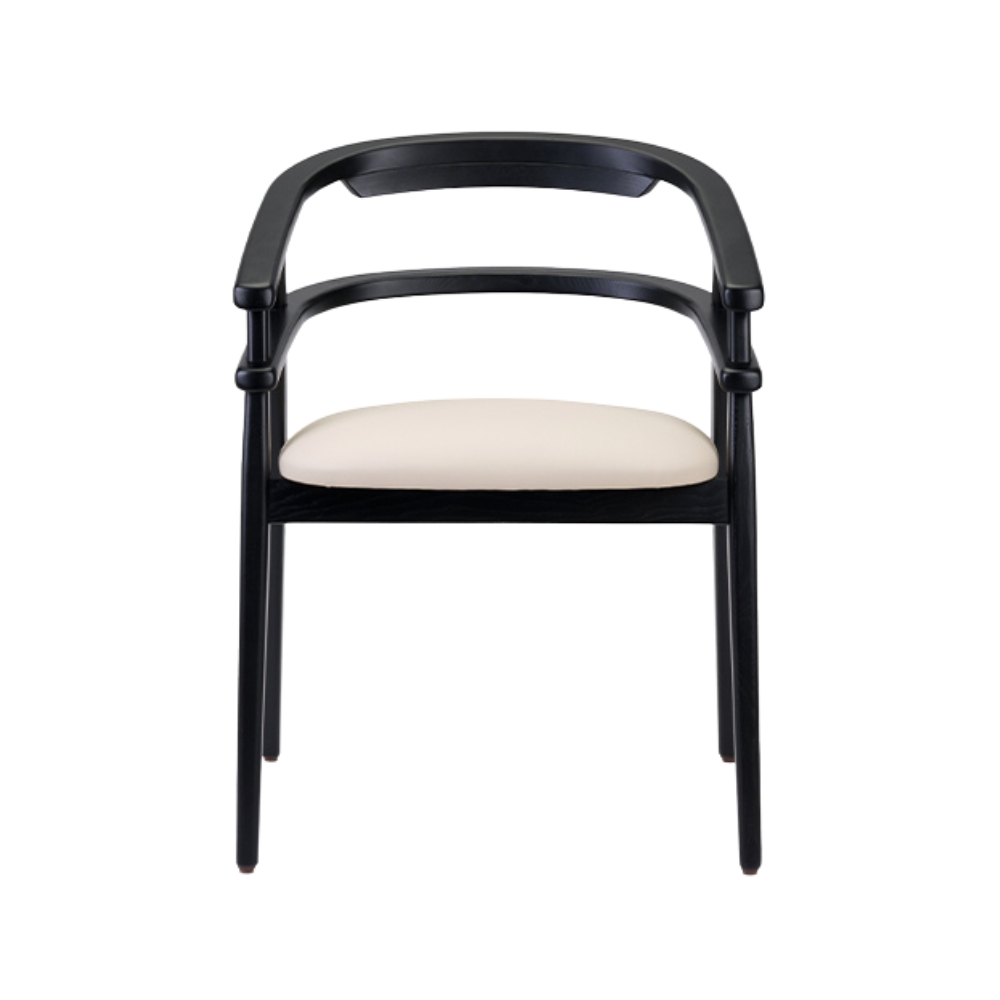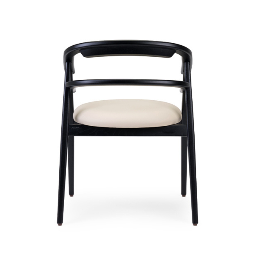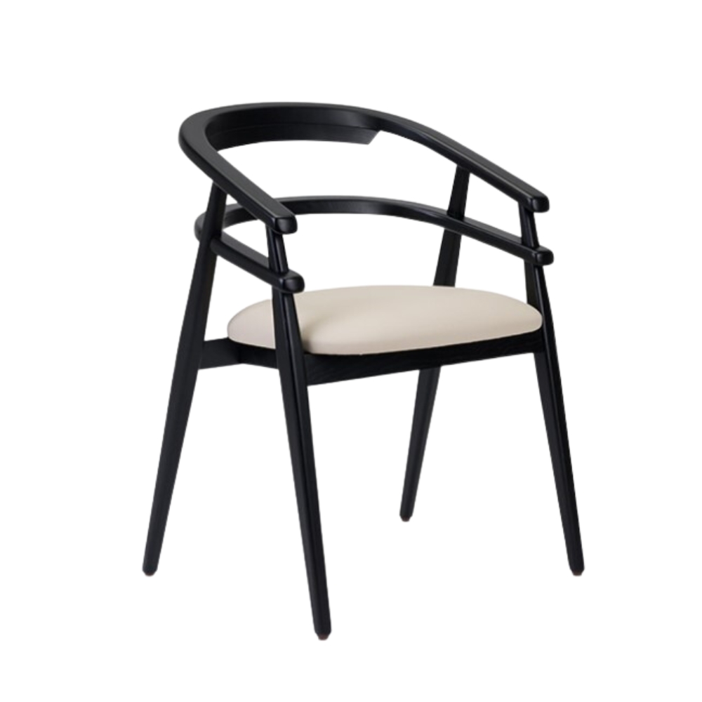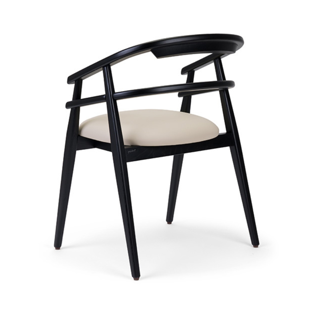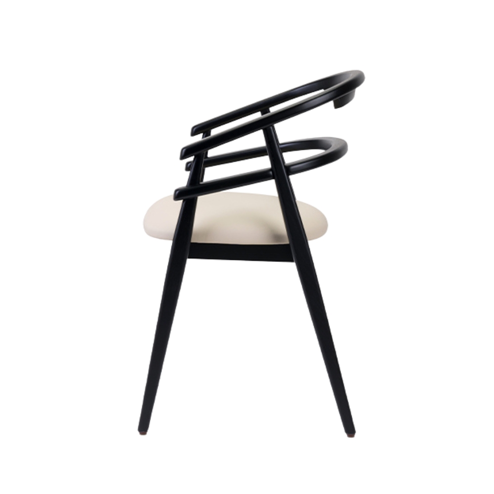 Model Number : 73565The Hullahoop Armchair features a curved, wooden backrest and upholstered seat pad and backrest, offering both comfort and style. It has sleek, tapered legs that add a modern touch.