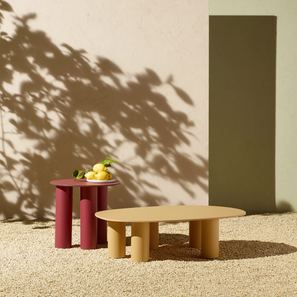 Model Number : 77617The Hyppo table collection emerges from playful experimentation, offering designs crafted for outdoor use but seamlessly adaptable to indoor environments. The contrasting tabletop, made from coloured-paste laminate, is distinguished by its thin profile and deliberately irregular edges.