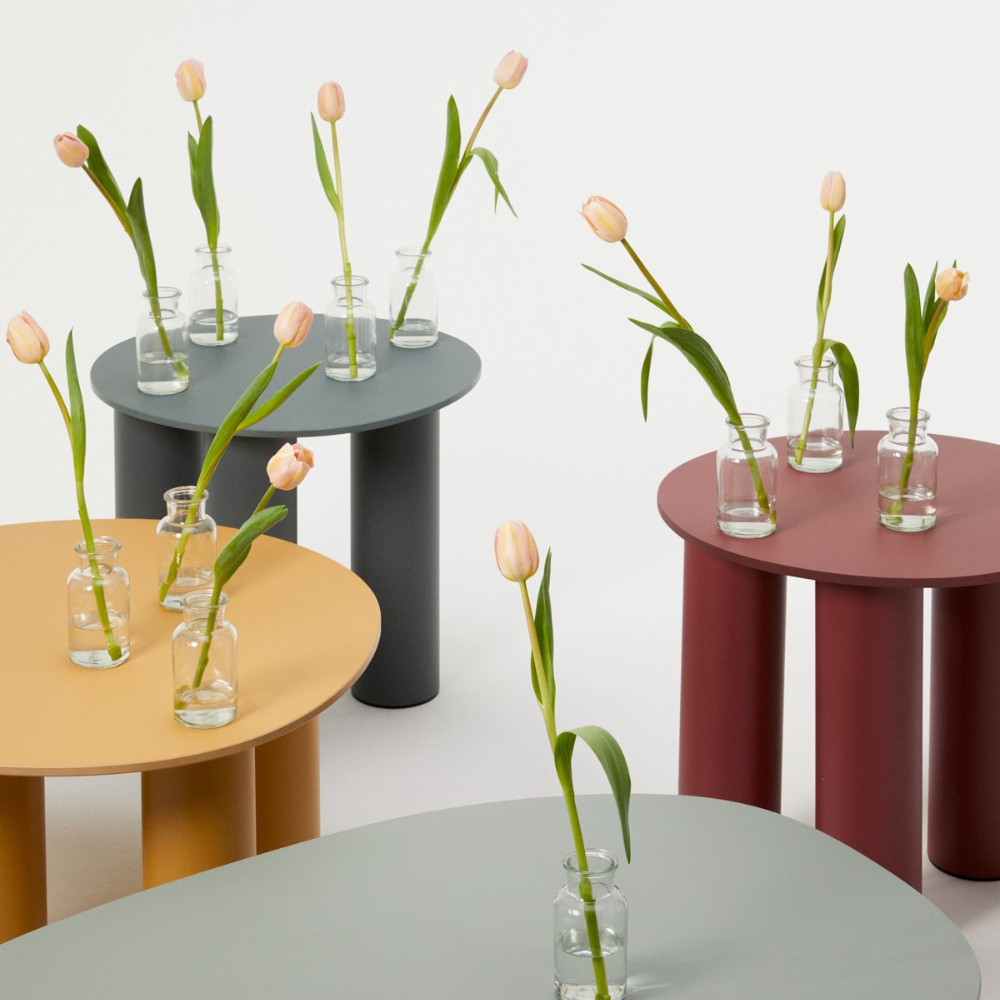 Model Number : 77616The Hyppo table collection emerges from playful experimentation, offering designs crafted for outdoor use but seamlessly adaptable to indoor environments. The contrasting tabletop, made from coloured-paste laminate, is distinguished by its thin profile and deliberately irregular edges.