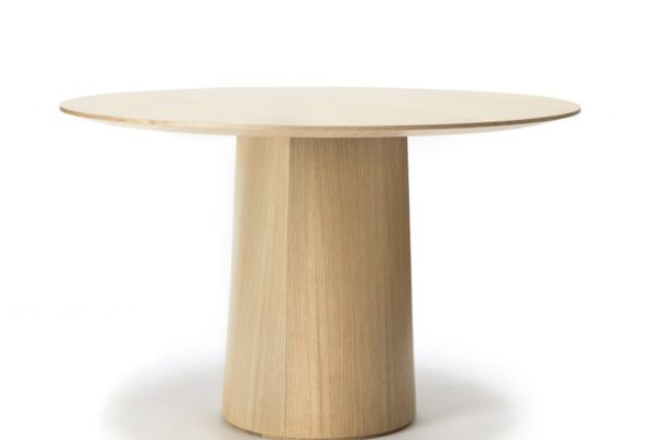 The Inge Table features four identical components that seamlessly form the base, its round top creates the perfect setting for relaxed social gatherings, embodying understated elegance and reflective design.