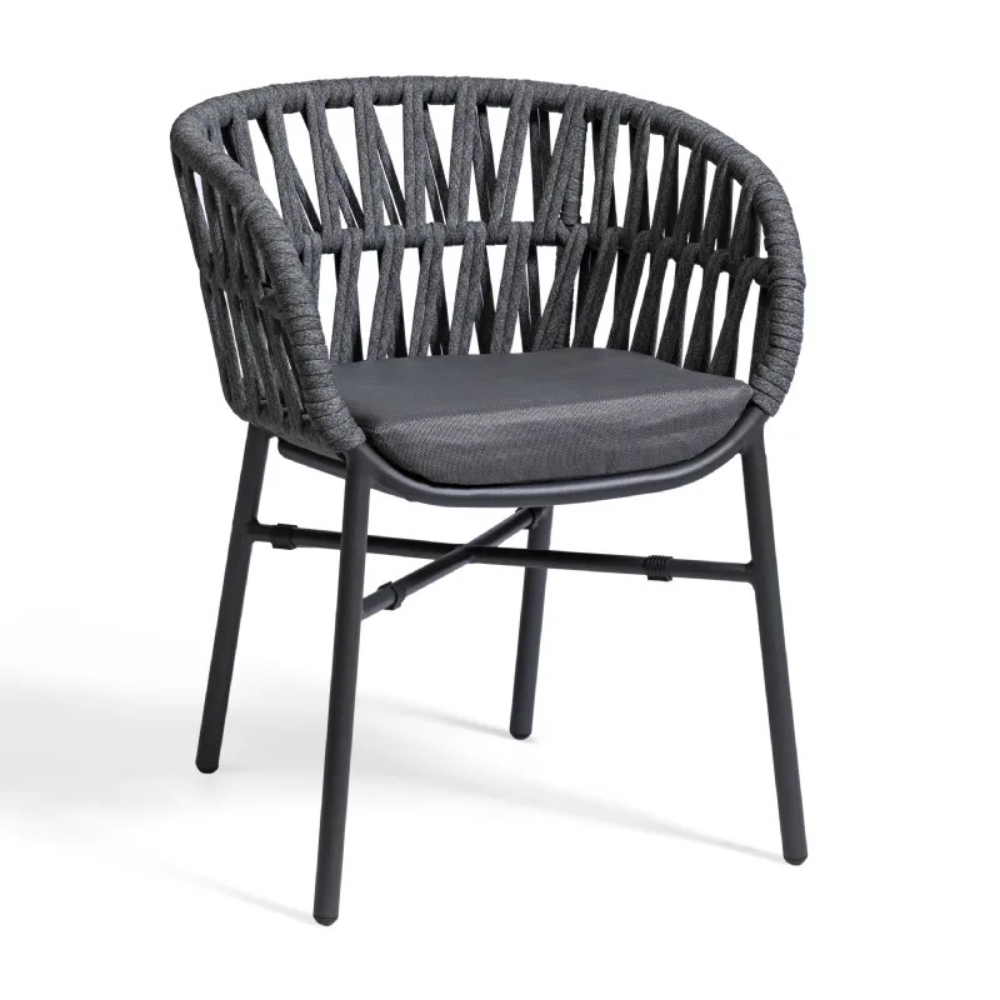 Model Number : 77832The Manila Armchair features a polyester powder-coated aluminium frame with a backrest elegantly wrapped in hand-woven synthetic rope. Its cushion includes a removable PVC fabric cover and quick-dry padding for added comfort and practicality.