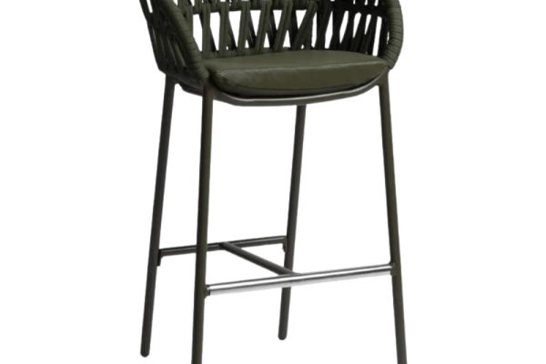The Manila Barstool features a polyester powder-coated aluminium frame with a backrest elegantly wrapped in hand-woven synthetic rope. Its cushion includes a removable PVC fabric cover and quick-dry padding for added comfort and practicality.