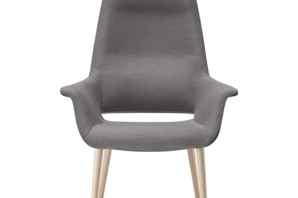 The Megan is a ergonomically designed armchair that blends comfort with refined style. Featuring a contoured upholstered shell and solid ash wood base, it’s available in premium fabrics, leather, or COM, with extensive wood finish options. Its clean lines and organic curves make it ideal for sophisticated lounge, dining, or reception spaces.