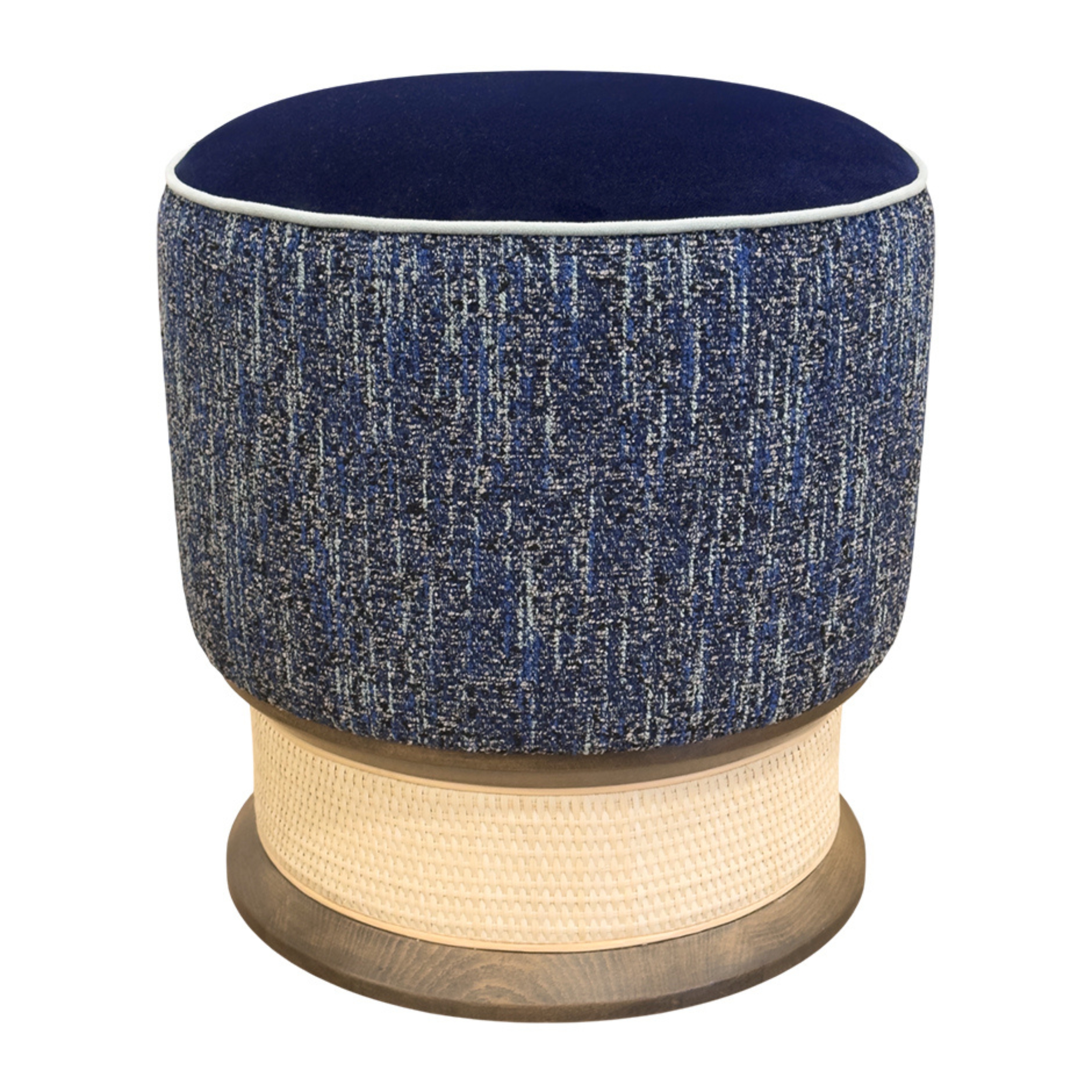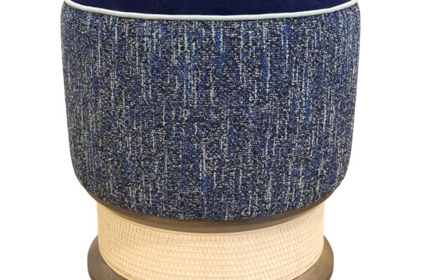 Introducing the Mira Pouf, unveiled at Salone 2025. It features a distinctive woven base paired with a luxuriously upholstered seat pad, combining texture and comfort in a striking design.