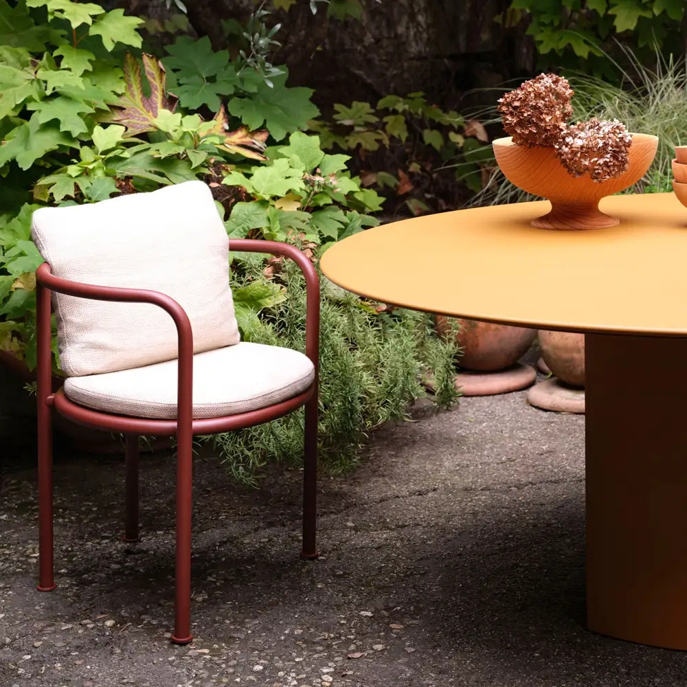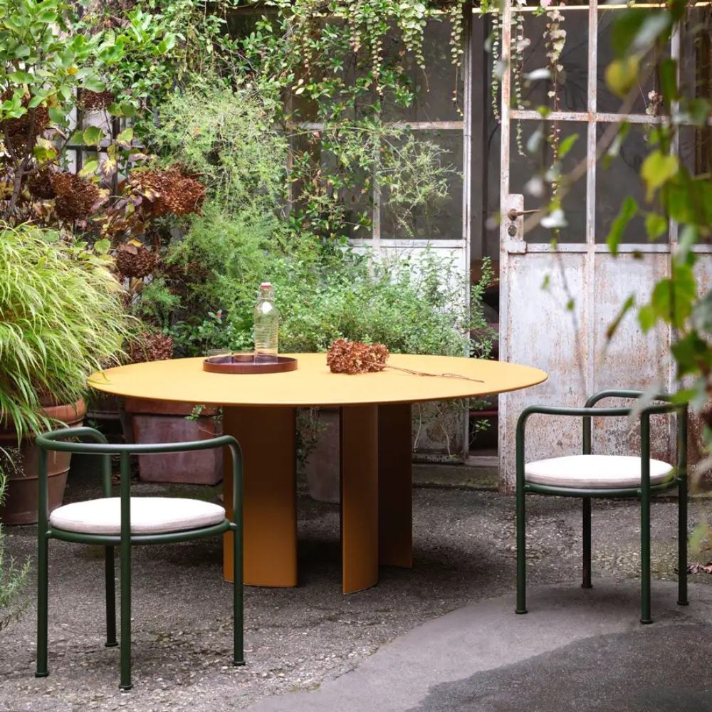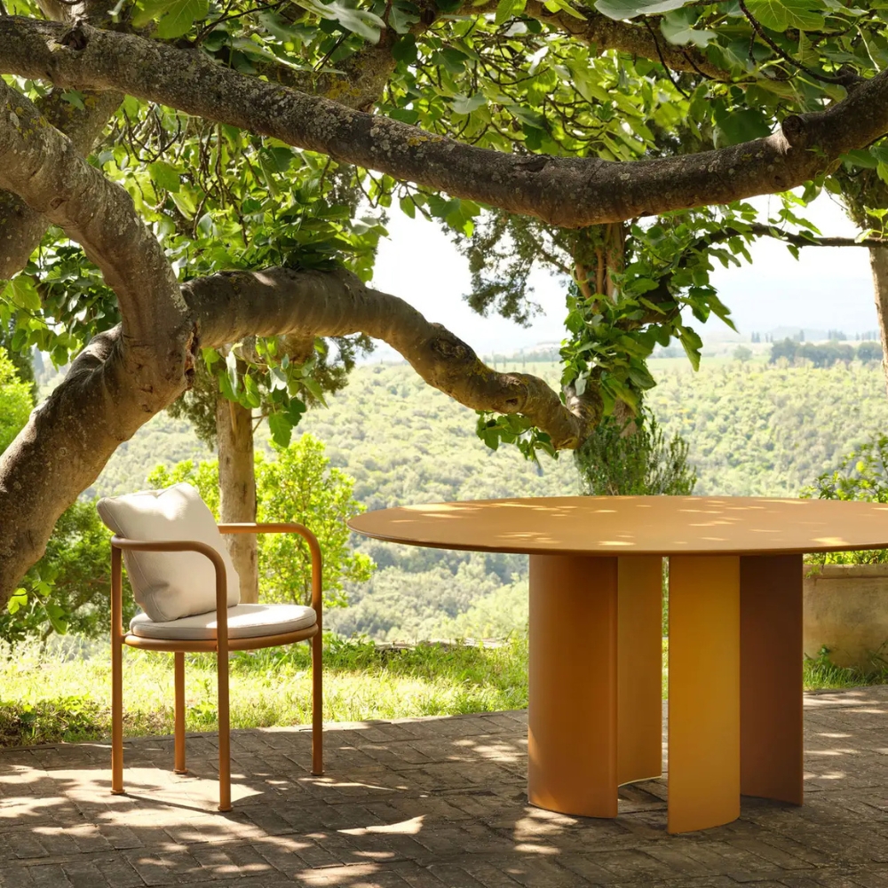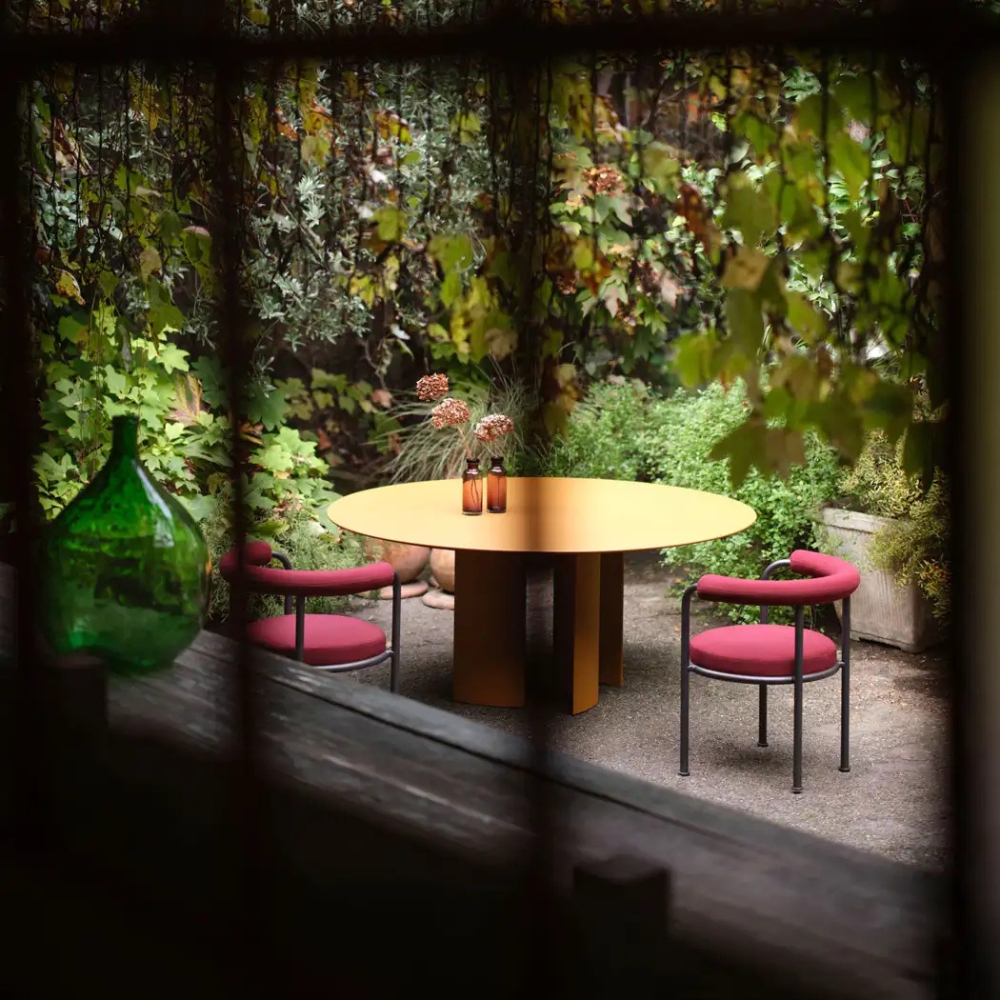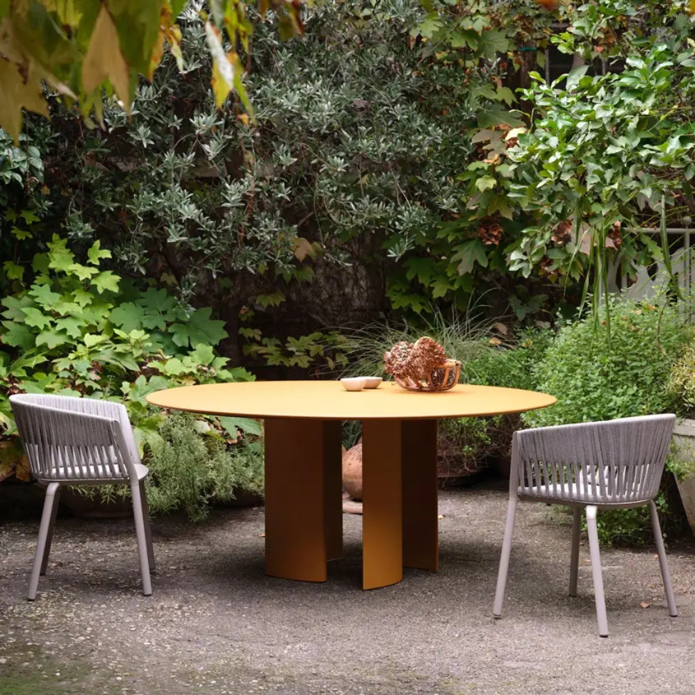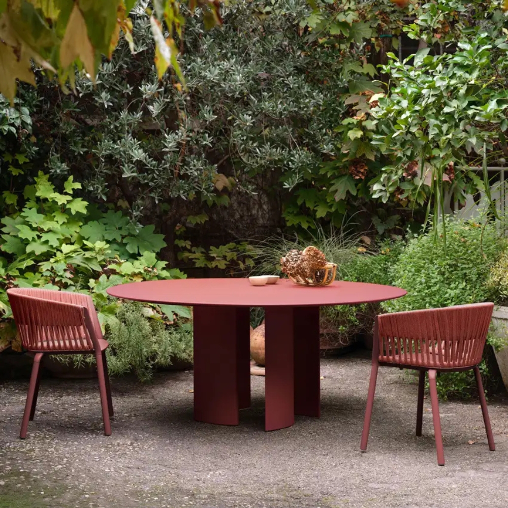 Model Number : 77322The Naca Round Table boasts a contemporary design with a clean, minimalist aesthetic. Its standout feature is the curved legs, crafted from extruded die-cast aluminum, which shape both the tables appearance and dimensions.