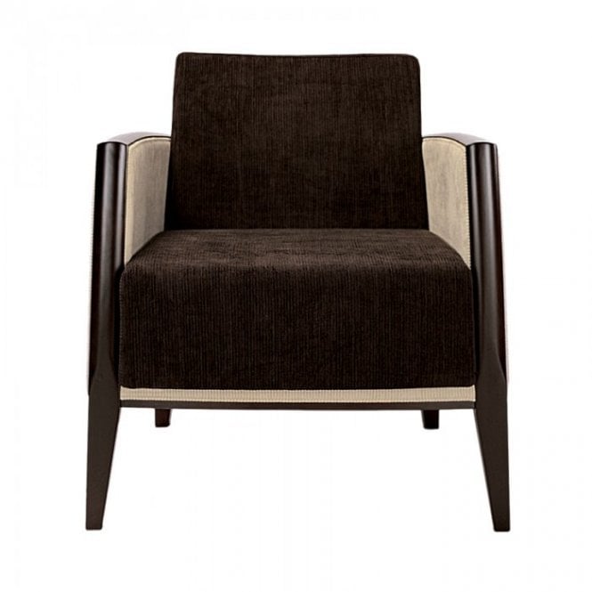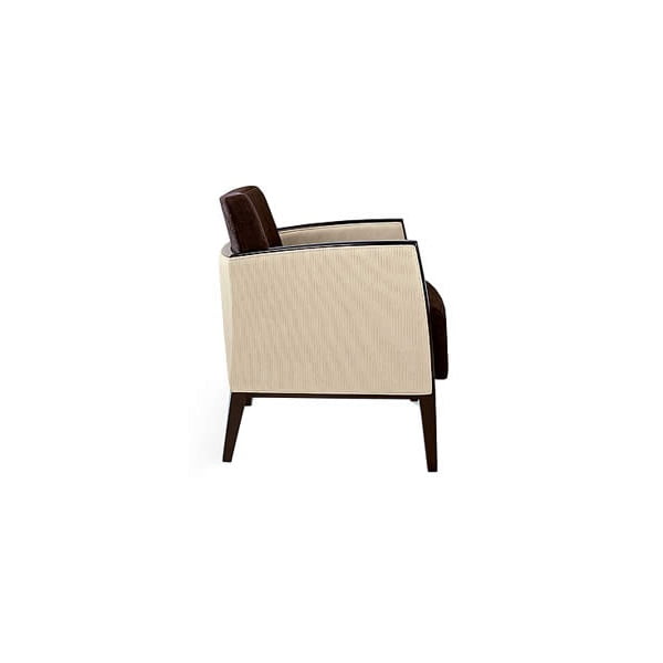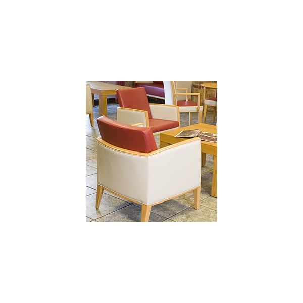 - Upholstered lounge chair – wood capping on arms