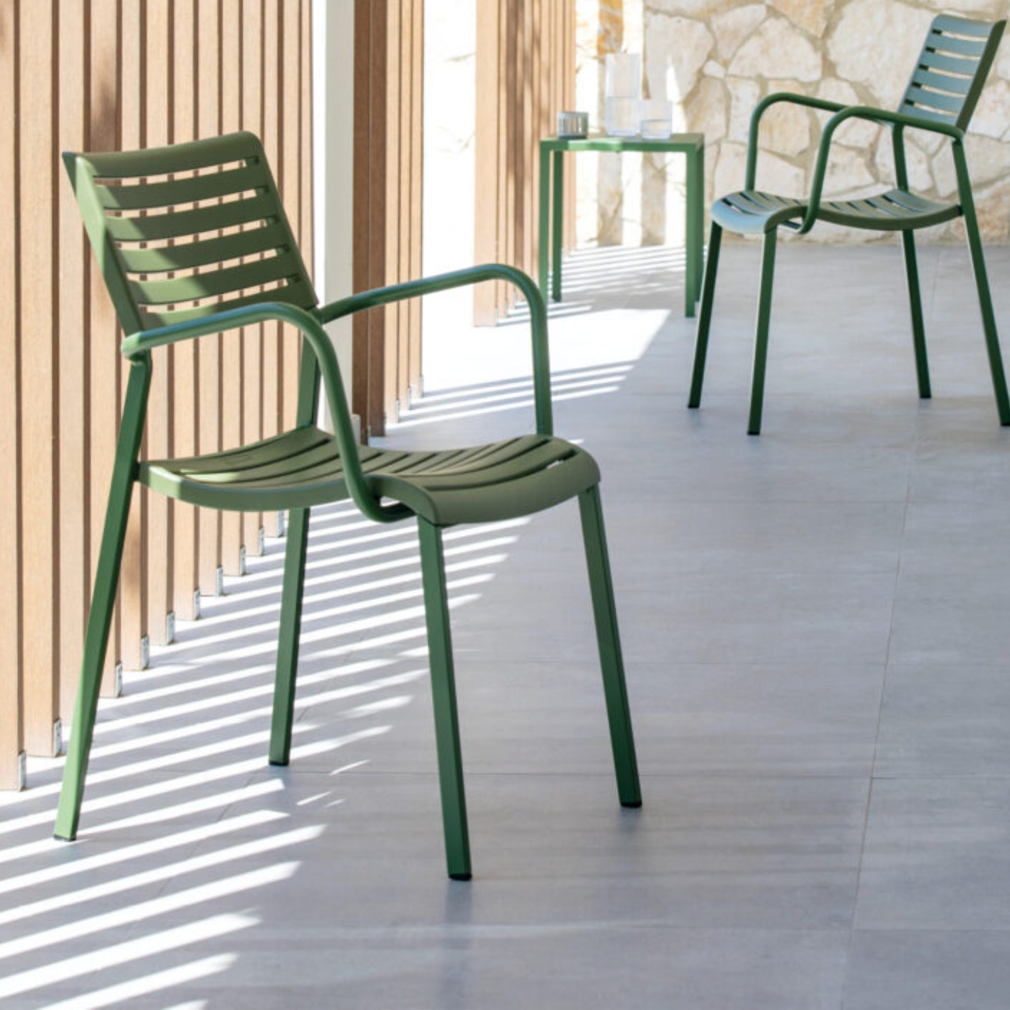The Nina Armchair is a durable outdoor seating solution designed for hospitality and contract environments such as bars, terraces, gardens, and urban spaces. Made with a galvanized steel frame and a weather‑resistant seat often constructed from recycled polypropylene, it combines lightness, comfort, stackability, and vibrant colour options – perfect for modern outdoor settings.