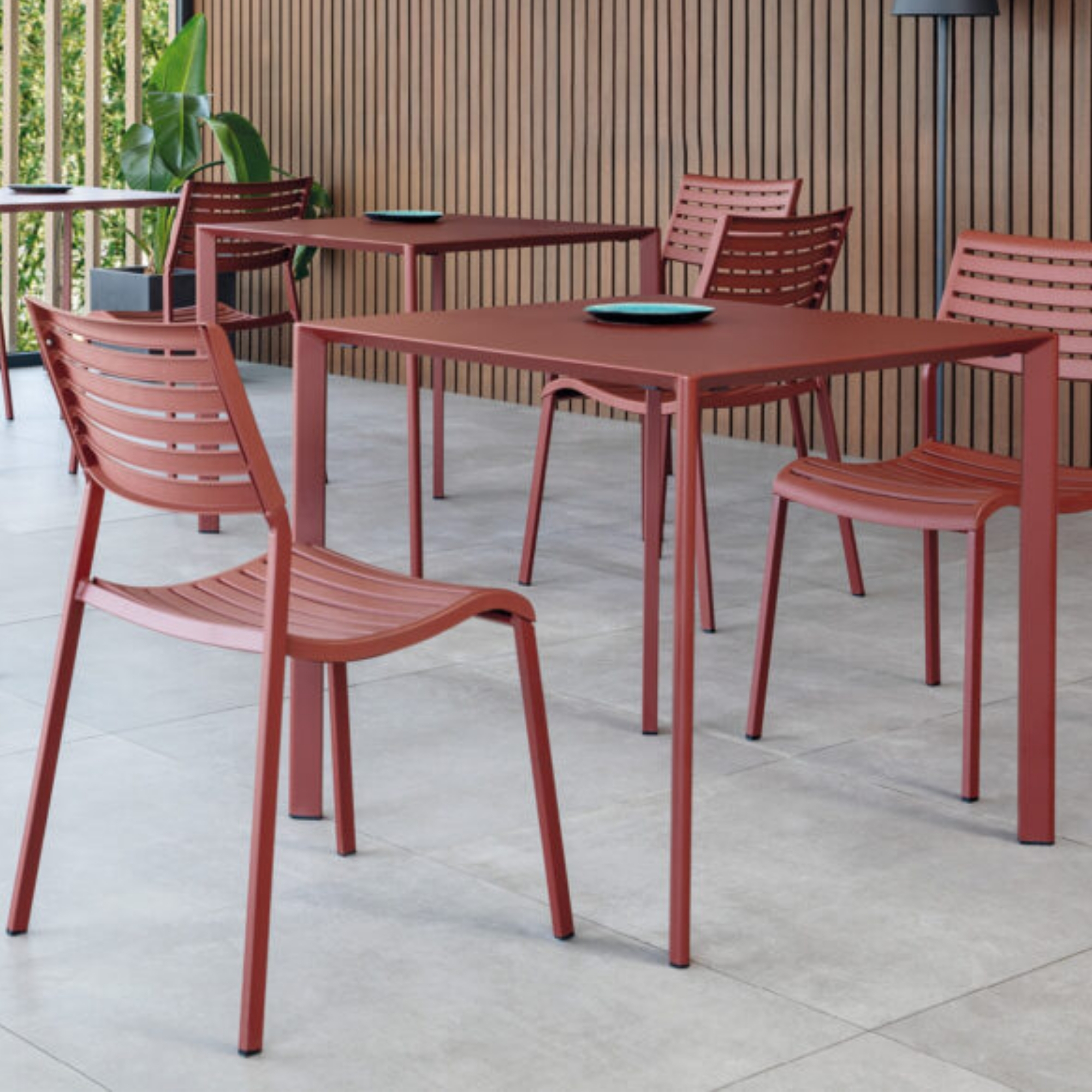 Model Number : 79066The Nina Side Chair is a lightweight, stackable outdoor chair designed for bars, terraces, poolside areas, urban spaces, and contract settings. Featuring a galvanised steel frame with a seat shell made from recycled polypropylene, Nina offers comfort, durability, and vibrant colour options that enhance contemporary outdoor environments. Its stackable design makes storage and space optimisation simple and efficient.