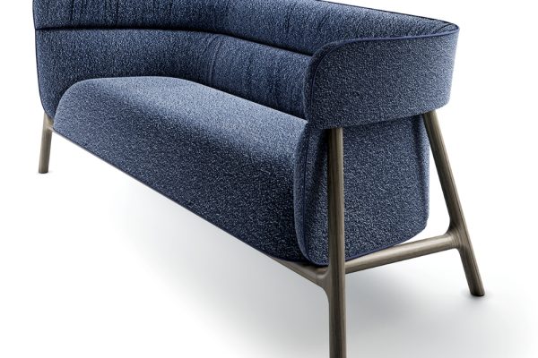 The Nobu Sofa’s smooth, flowing curves sit elegantly on a bold base, creating a standout contrast. A one-of-a-kind design.
