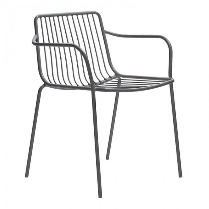 Model Number : 53701The Nolita Armchair is a minimalist armchair with a sleek, open-frame design. Made from powder-coated metal, the chair features thin vertical slats for the seat and backrest, complemented by curved armrests for added comfort.