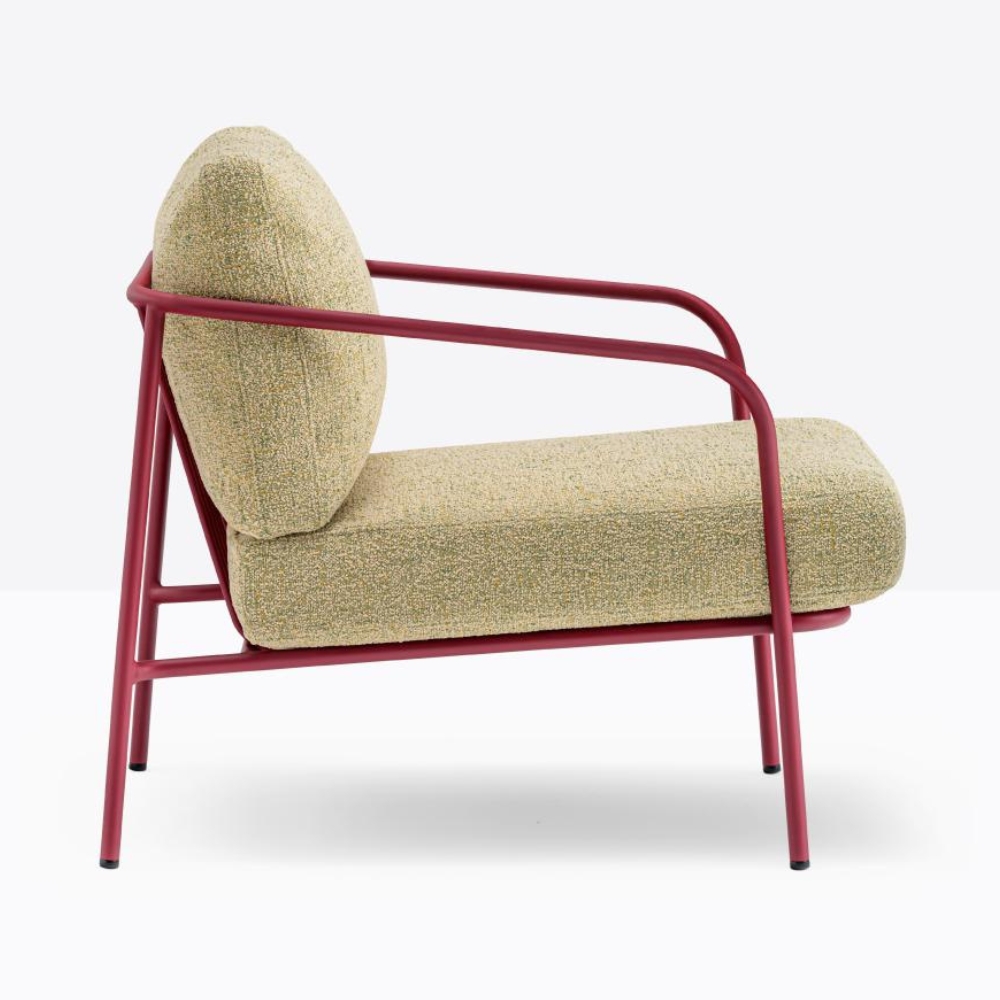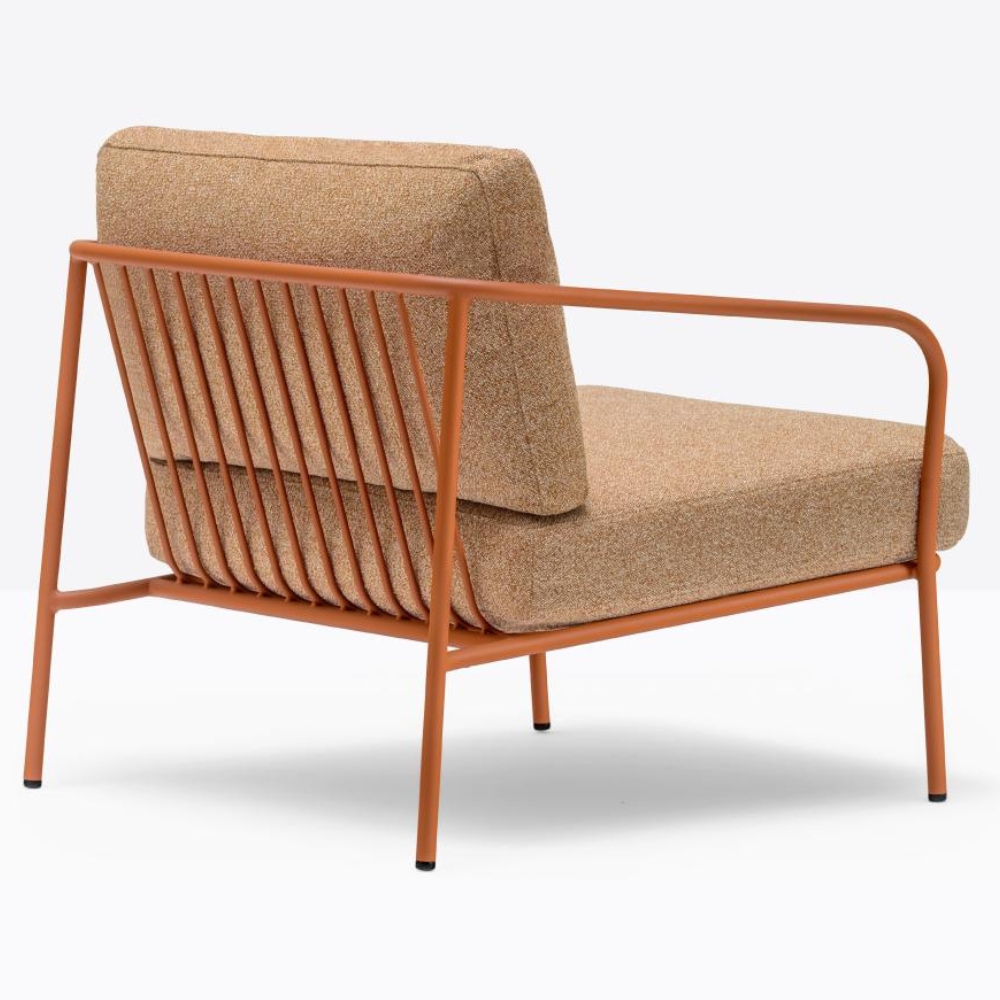 The Nolita Relax Lounge Chair’s steel tube frame creates a rhythmic, balanced look, offering strength and durability. A single line defines both armrests and backrest, while soft cushions with waterproof lining and removable covers ensure comfort. Perfect for contract spaces, Nolita Relax embodies transparency and lightness, ideal for enjoying relaxing moments outdoors.