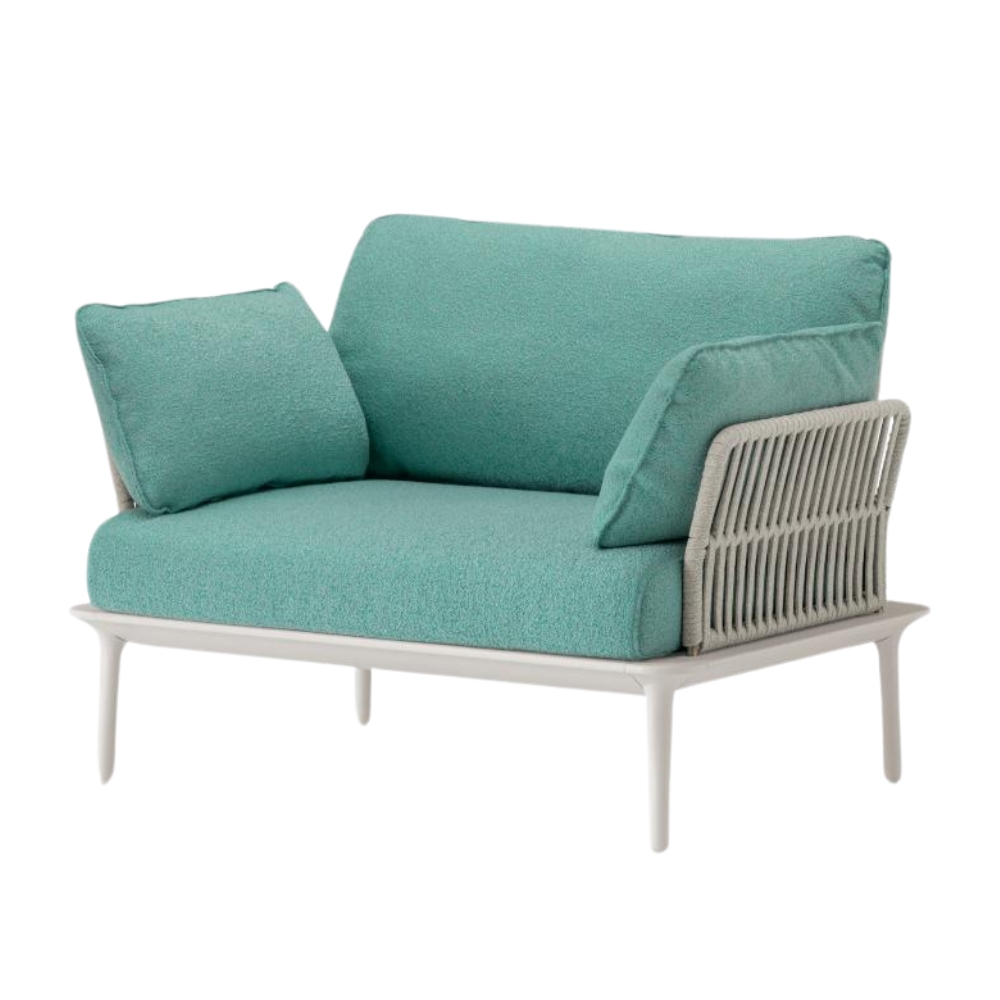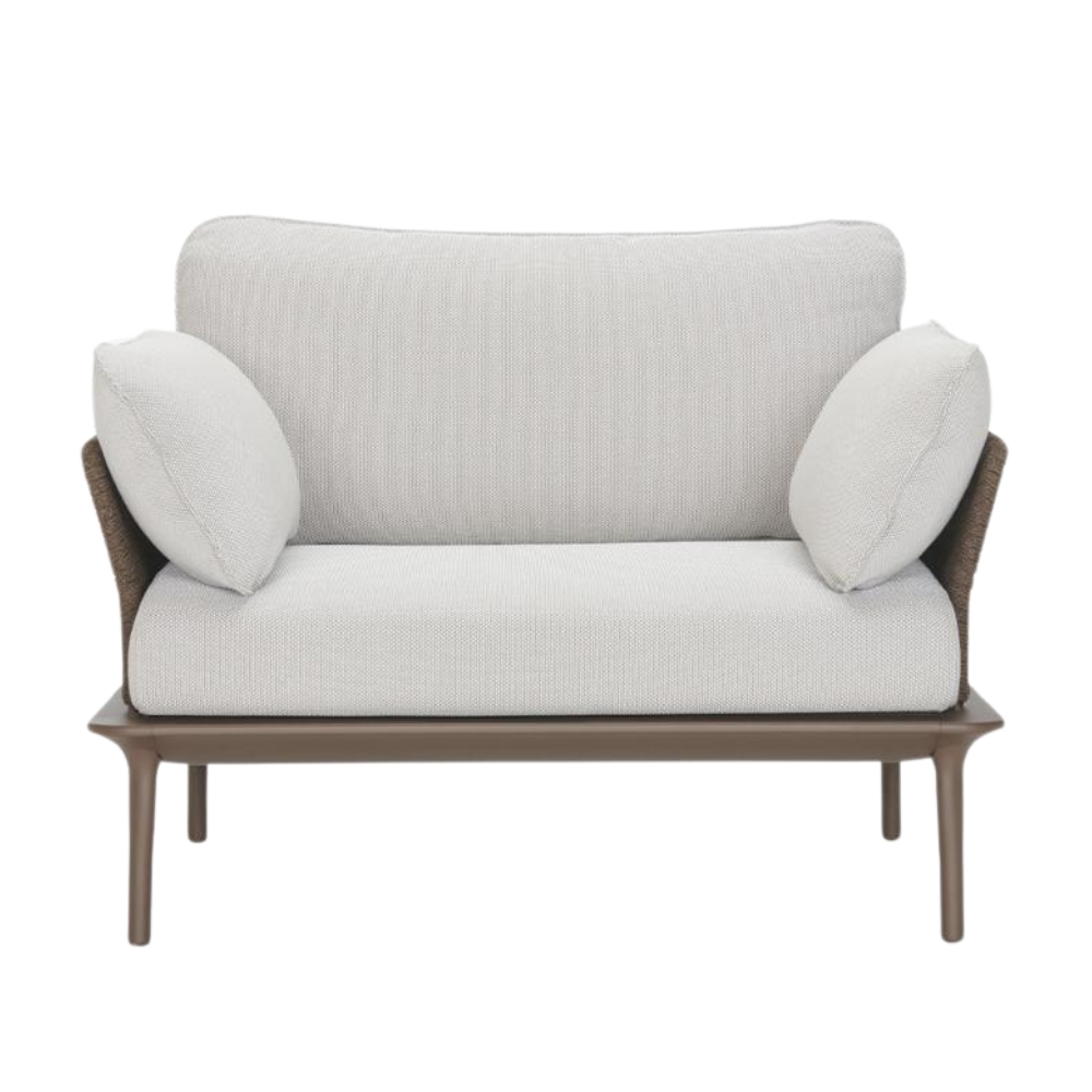 Model Number : 73741The Reva Twist outdoor collection features sleek lines and generous proportions. The three-seater sofa is supported by four tapered die-cast aluminum legs positioned at the edges of the extruded aluminum frame.