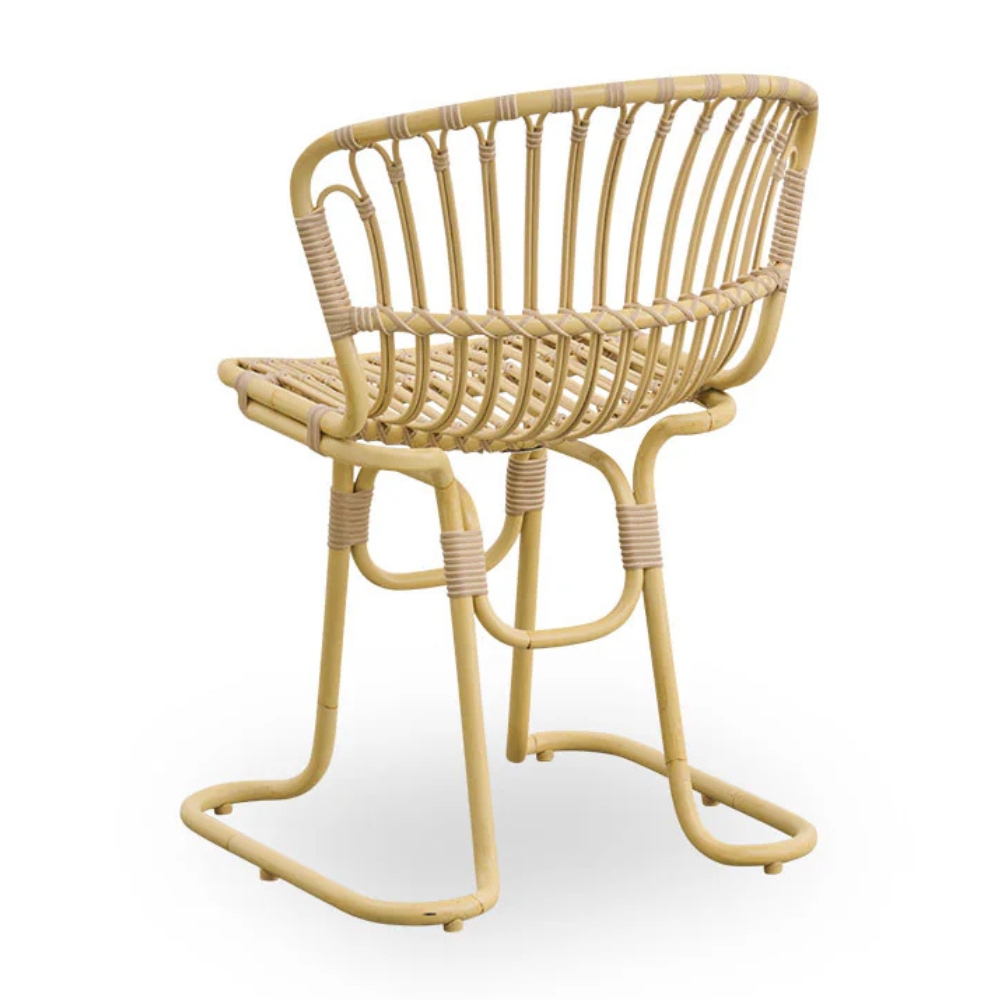 Crafted for outdoor use, the Rita Exterior dining chair is handmade from aluminium and ArtFibre, ensuring durability in all weather conditions. The aluminium frame is meticulously hand-painted to replicate the warm, inviting appearance of natural rattan.