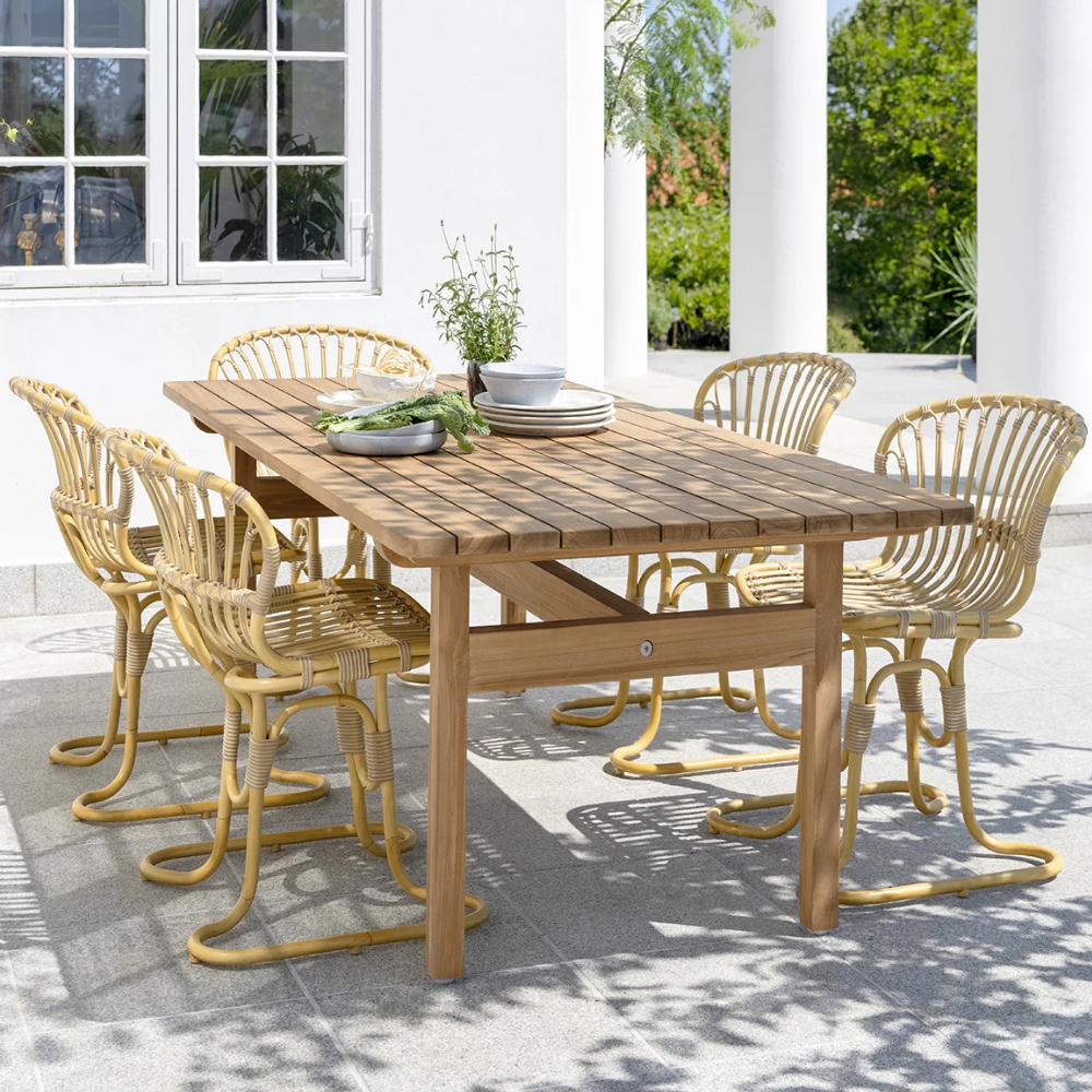 Model Number : 77798The Rita dining chair, designed by Nanna Ditzel in 1965, features unconventional legs that allow it to stand steadily on all outdoor surfaces without sinking into the ground.