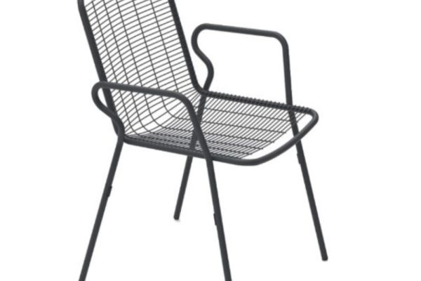 The Roma Armchair features a sleek, modern design with a distinctive grid-patterned back, perfect for outdoor spaces. Lightweight and practical, it stacks up to 8 chairs for easy storage, combining style with functionality.