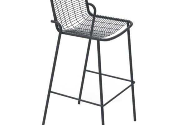 The Roma Barstool features a sleek, modern design with a distinctive grid-patterned back, perfect for outdoor spaces.