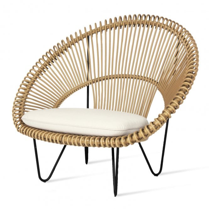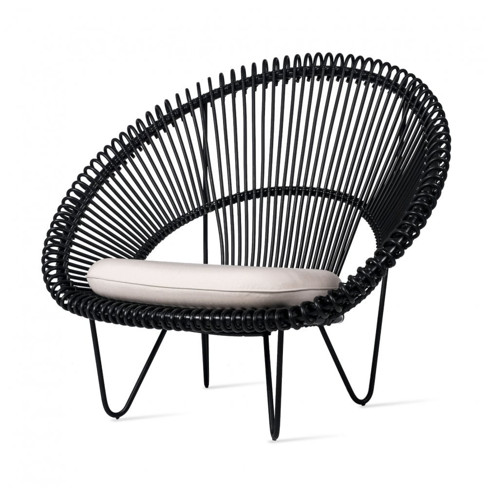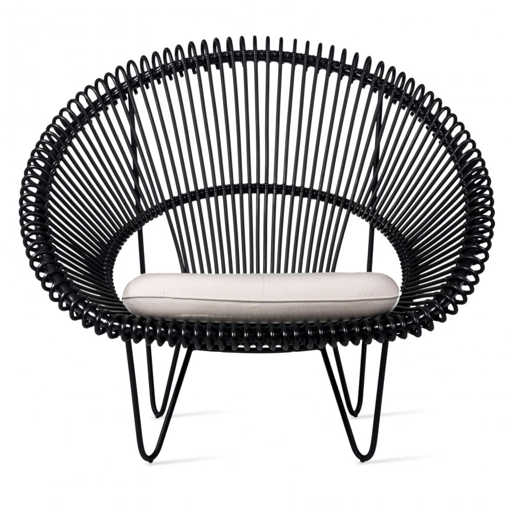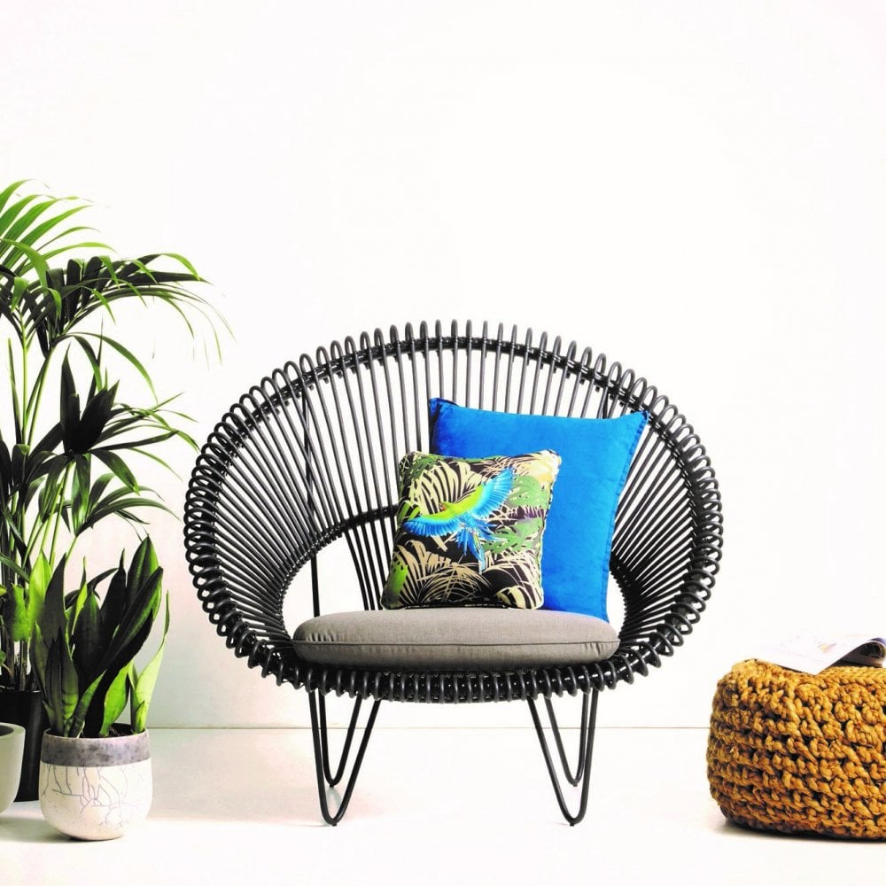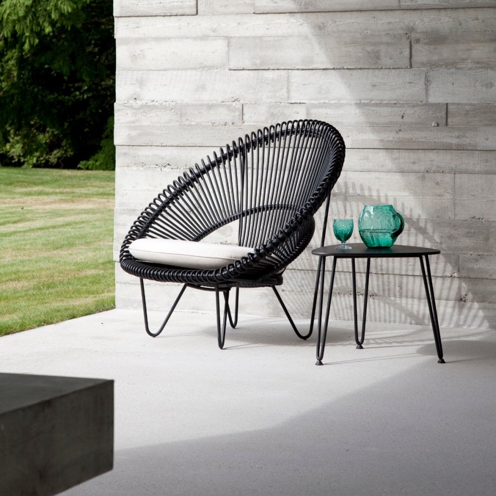 Model Number : 65584- Polyethylene wicker on an aluminium frame and a galvanized and black powder coated steel base.