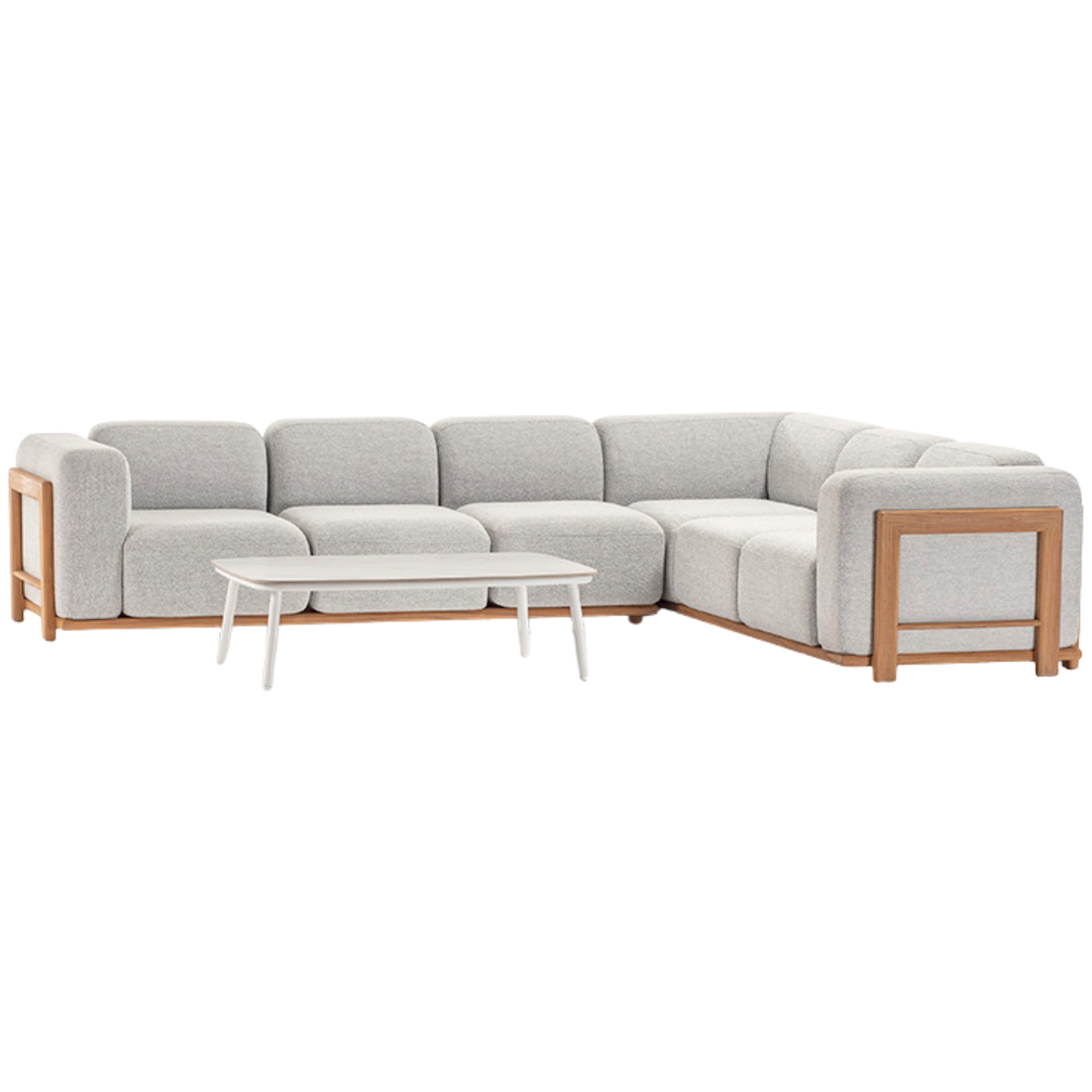 Model Number : 79155The Rule Teak Set is a versatile outdoor lounge solution that combines refined design with robust construction. This modular ensemble features a choice of configurations, whether with two sofas and a pouffe or a sofa, lounge and pouffe, allowing you to tailor your outdoor space to suit your needs. Crafted with a sleek aluminium frame, rich teak accents and quick-dry foam suspended in water-resistant acrylic fabric, it delivers both contemporary style and all-weather performance. Perfect for gardens, patios or terrace lounges, the Rule Teak Set brings together comfort and sophistication for relaxed outdoor living.