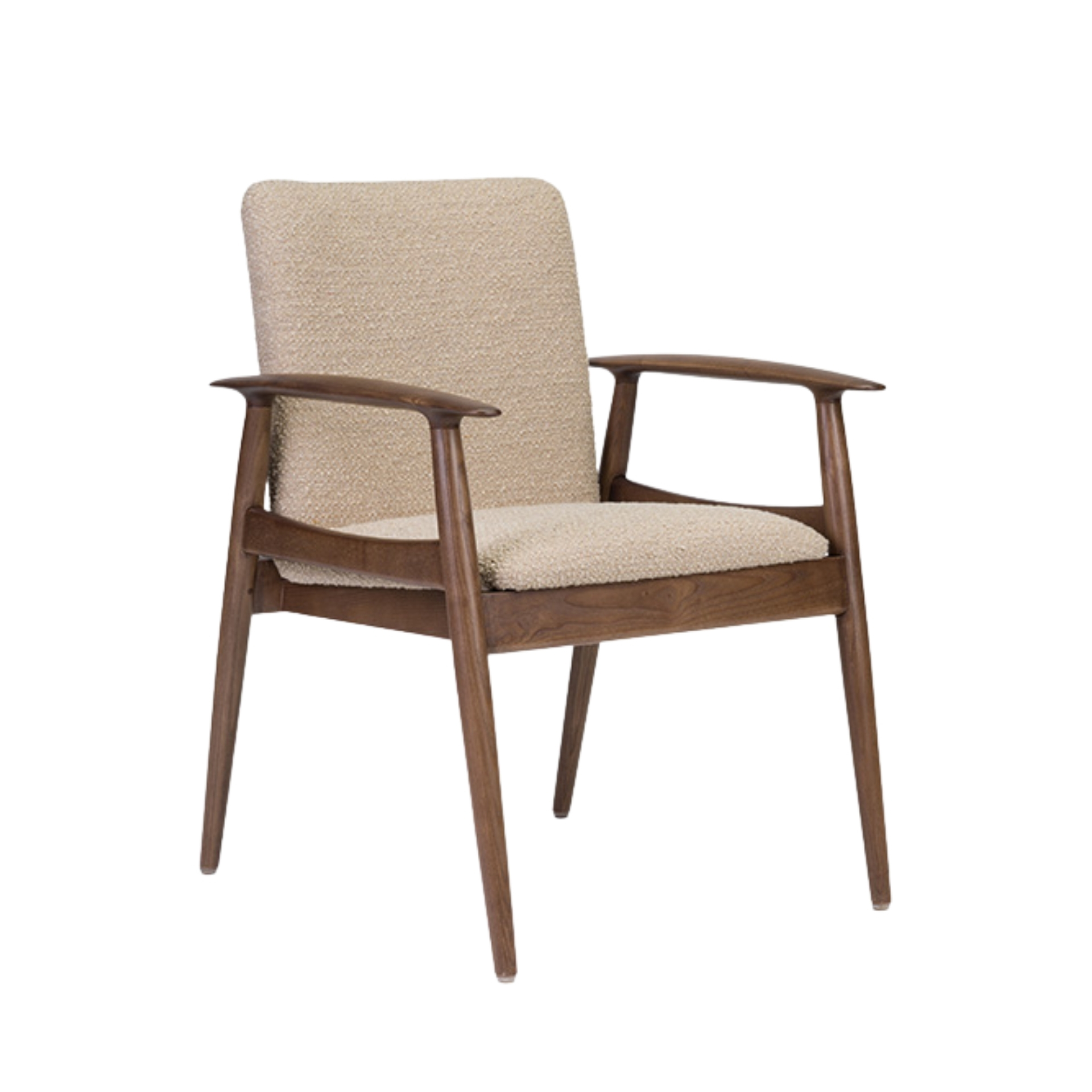 The Sandal Armchair is a sleek, Scandinavian-inspired chair that combines soft upholstery with a slim, exposed wood frame. Its clean lines and gentle curves give it a modern, airy feel, while the padded seat and supportive back make it genuinely comfortable. Whether in a home or a commercial space, it offers a perfect balance of style and function.