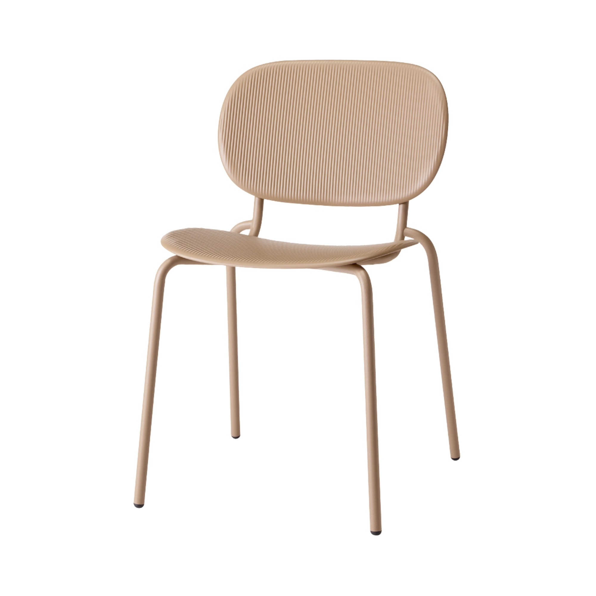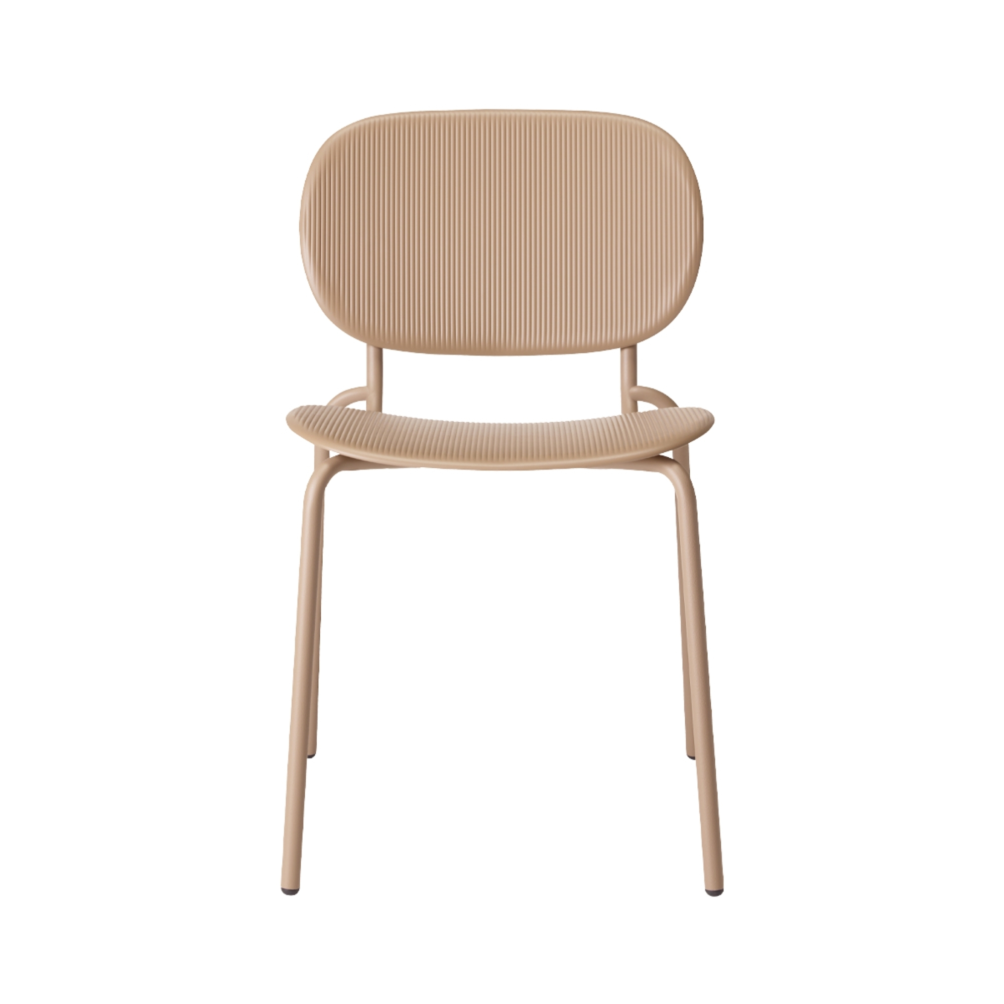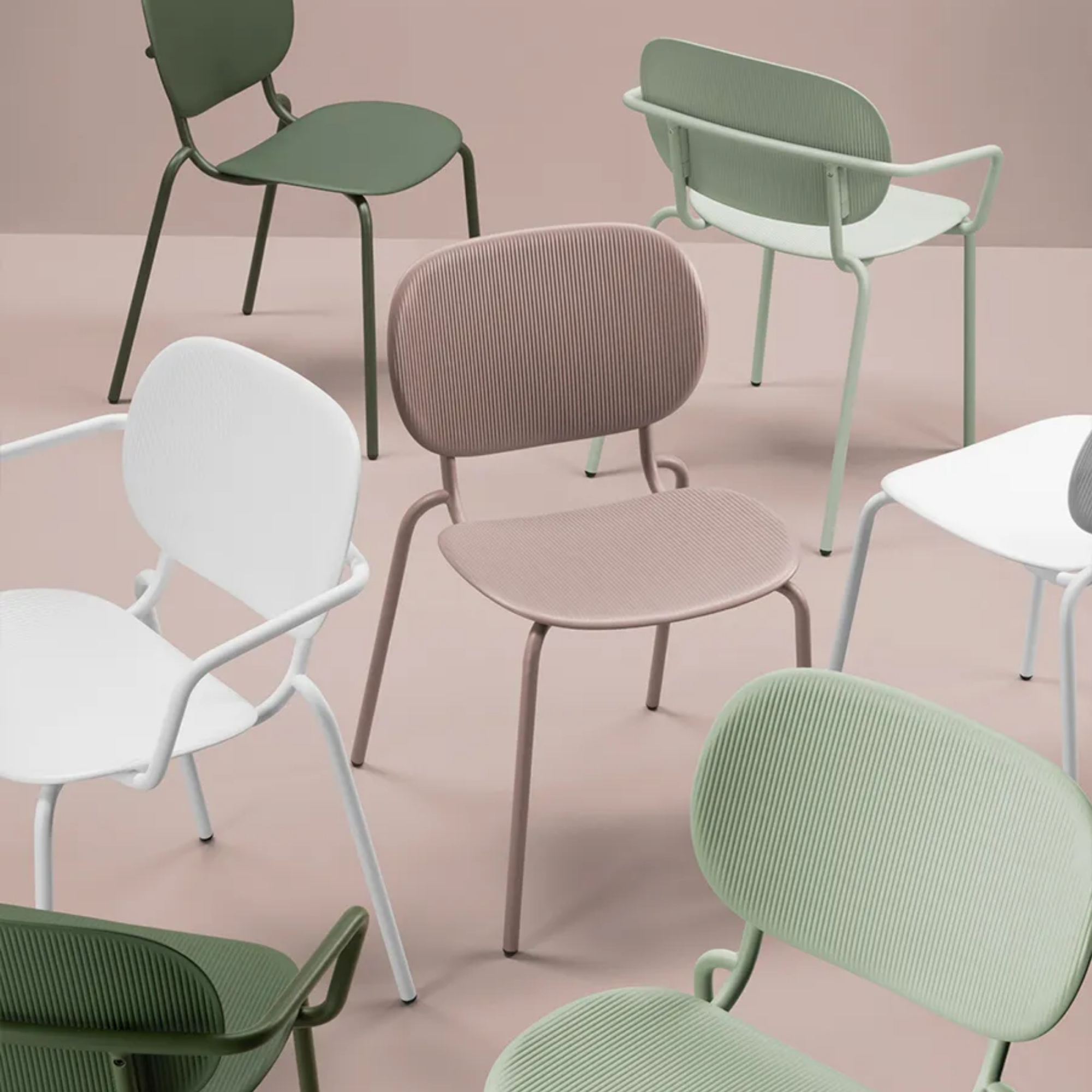 Model Number : 78832The SI-SI Vibes Side chair. This striking chair is distinguished by its innovative surface pattern, inspired by the fluid rhythm of sound waves and acoustic vibrations, giving both the seat and backrest a dynamic, tactile quality that brings visual interest to modern interiors. The SI-SI Vibes is made from certified regenerated plastic with a slender metal frame, blending sustainability with refined Italian design. Ideal for indoor and outdoor environments – from dining spaces and cafés to offices and creative hubs – it offers versatile style and robust performance without compromising on comfort or character.