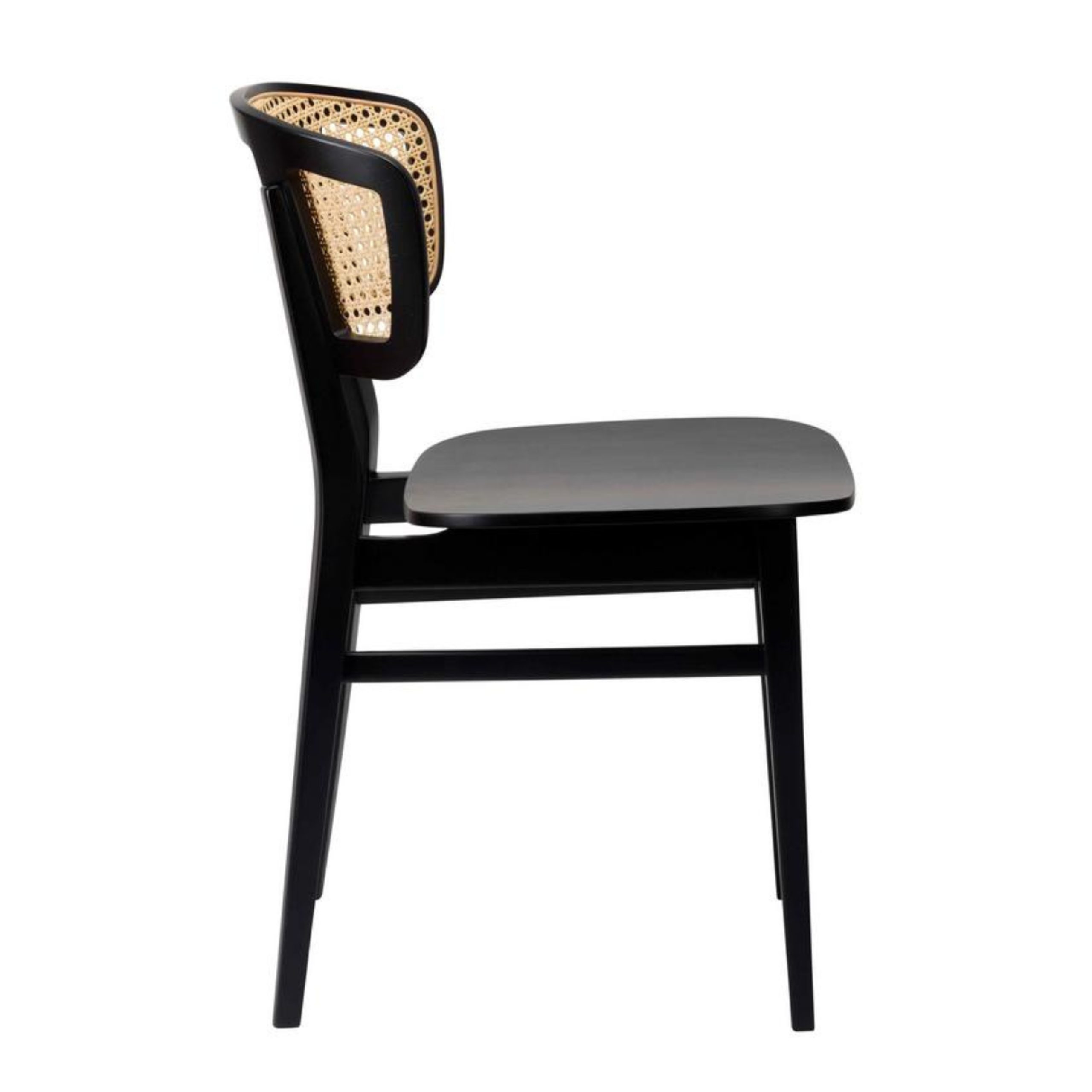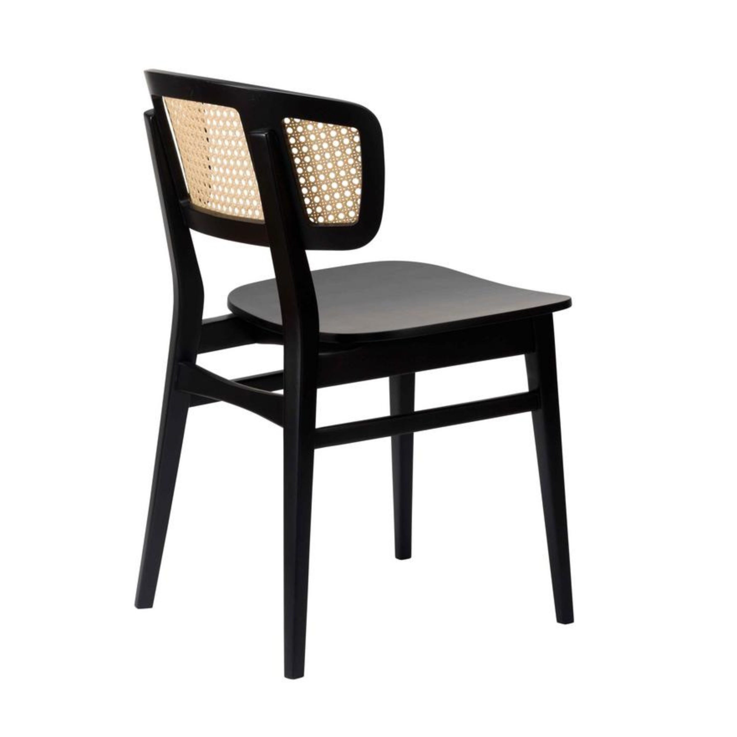 Model Number : 78478The Sophia SB Side Chair effortlessly blends modern elegance with classic charm, showcasing a natural cane backrest, sleek black wooden frame, and ergonomically curved seat. Lightweight yet durable, it’s perfectly suited for dining spaces, cafés, or work environments—offering a versatile combination of comfort, style, and timeless appeal.