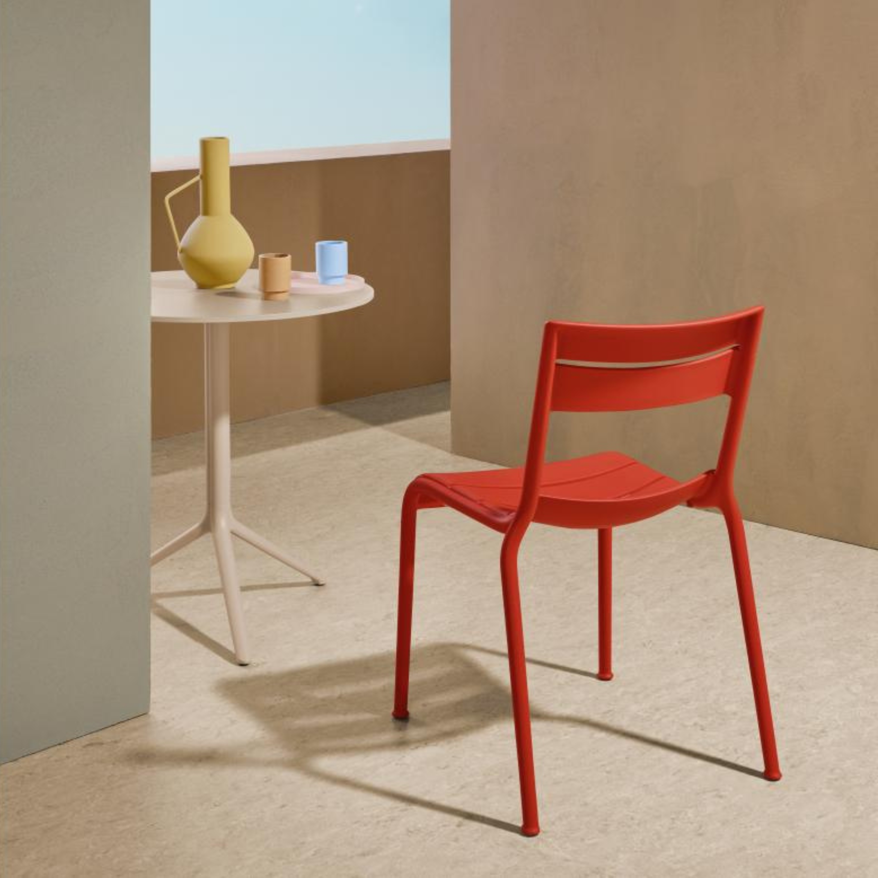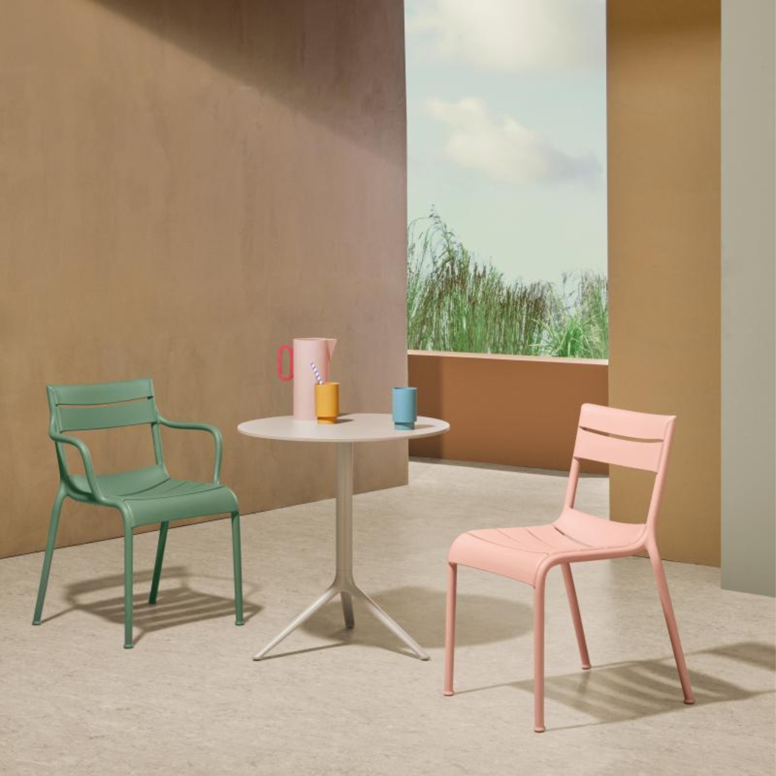 Model Number : 73372Introducing the Souvenir Armchair, this monoblock polypropylene armchair, crafted specifically for outdoor use, features a harmonious design that seamlessly integrates all its elements in an organic and natural form. Its soft curves and three-dimensional slats provide exceptional comfort, while the legs gently widen at the base, transitioning into an elegant small foot for added charm.
