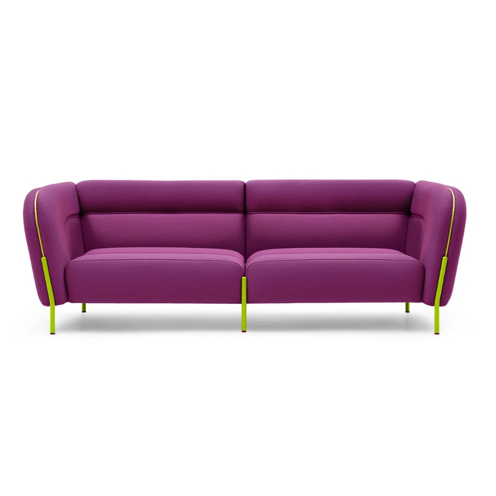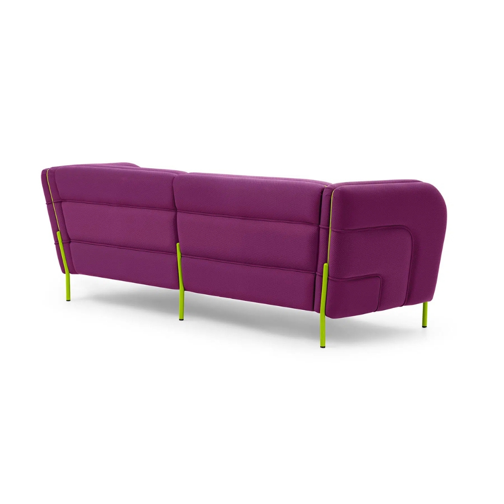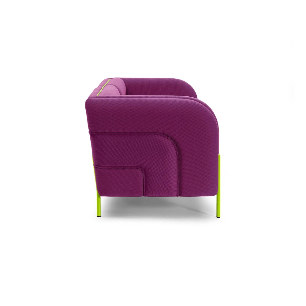 Model Number : 77256This armchair and modular sofa set features a bold, voluminous design with diagonally angled arms that enhance the sense of openness. The generous upholstery contrasts with a sleek metal base, elevating the piece to create a floating, weightless effect.