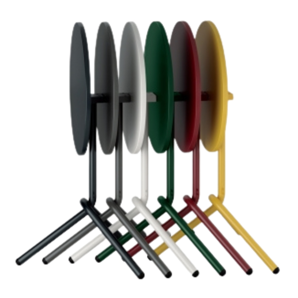 The Ta Round Dining Table metal table is instantly recognisable for its unique tubular steel frame, particularly its distinctive base design. Its foldable design enables horizontal stacking, optimising space efficiency as needed.