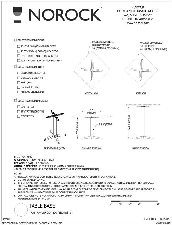 Model Number : 62487NOROCK table bases offer hospitality venues the ideal solution to the age old problem of ‘wobbly’ tables. Available in a number of finishes and designs, the bases can be paired with any standard or bespoke Hill Cross Furniture table top to create a table that not only fits seamlessly into your design vision, but gives your customers comfort without compromise.