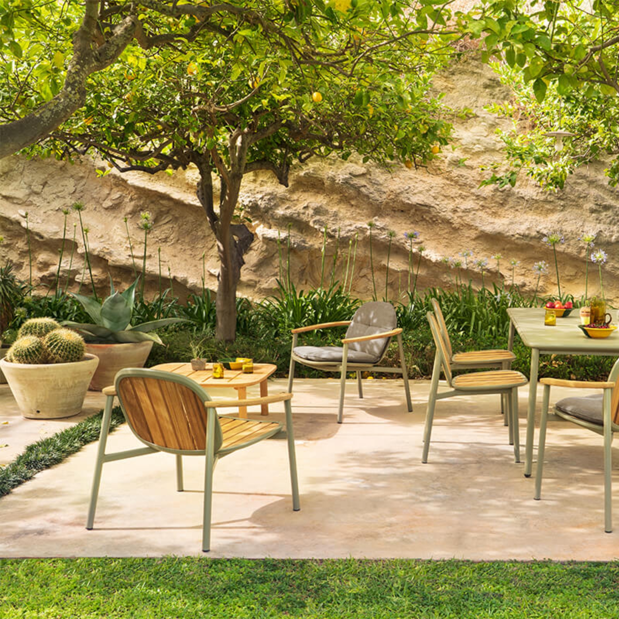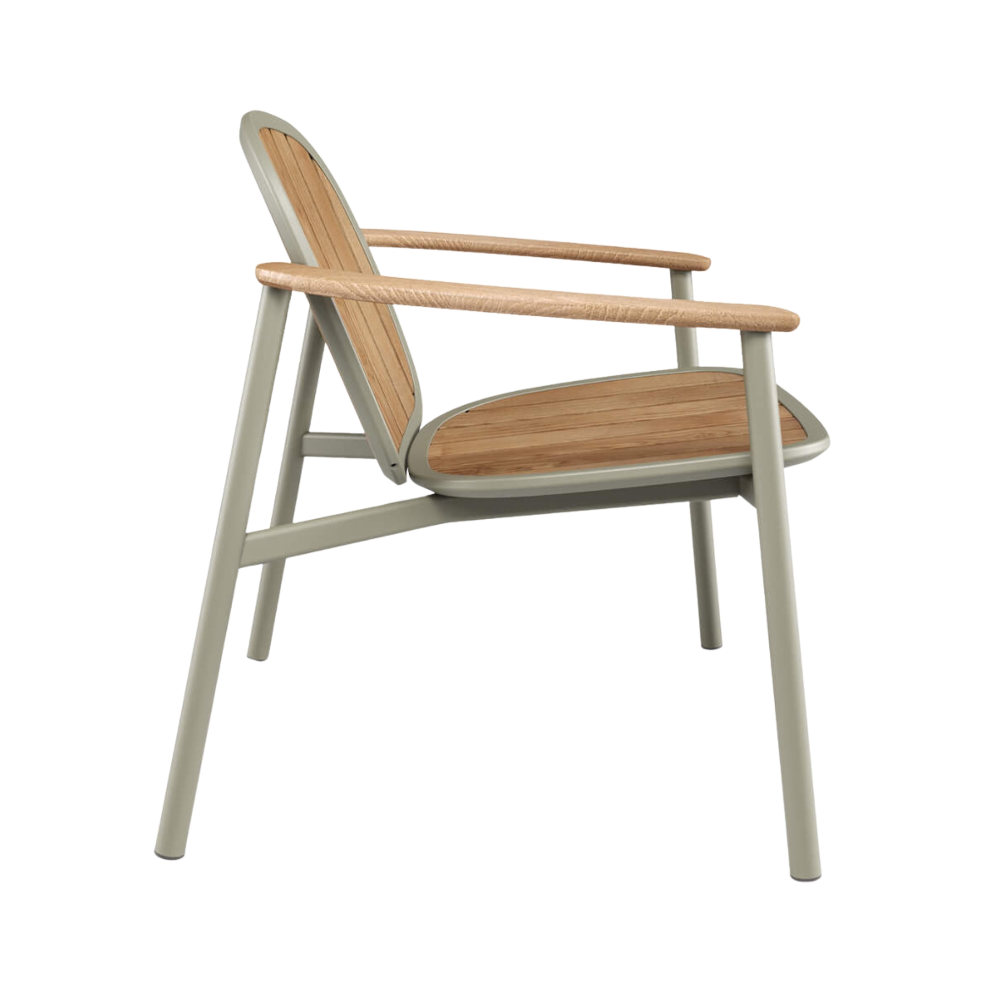 Model Number : 78010The Twins lounge chair is a sophisticated outdoor armchair, combining a powder-coated aluminium frame with warm teak slats on the seat, back and armrests. Its sculptural, flowing lines create a modern yet inviting look, making it suitable for terraces, gardens and hospitality spaces. Designed for long-lasting outdoor use, it balances comfort, durability and contemporary Italian design.
